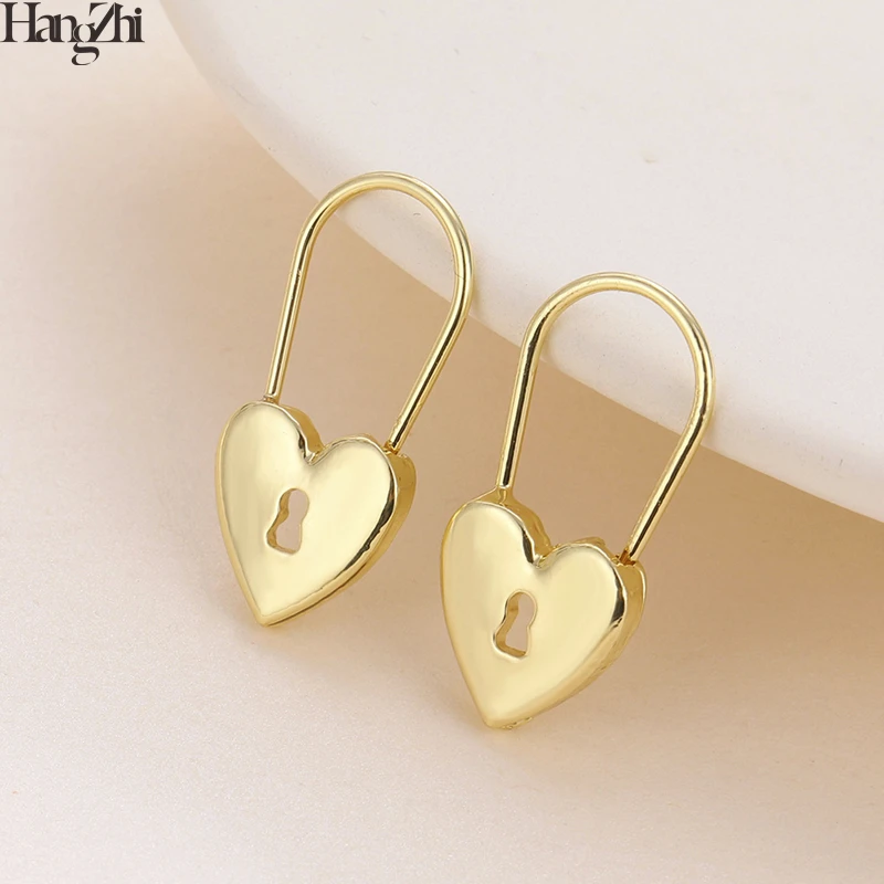 Новинка 2020, глянцевые маленькие серьги-гвоздики HangZhi золотого и серебряного цвета с квадратным сердцем и замком, геометрические защитные серьги с булавкой для женщин, бижутерия