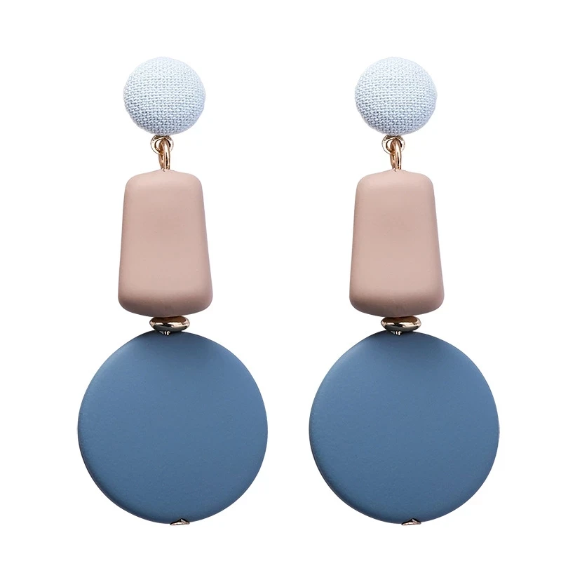 Корейские круглые акриловые полимерные синие серьги для женщин небесно-морские Роскошные Висячие серьги Стразы геометрические деревянные квадратные ювелирные изделия