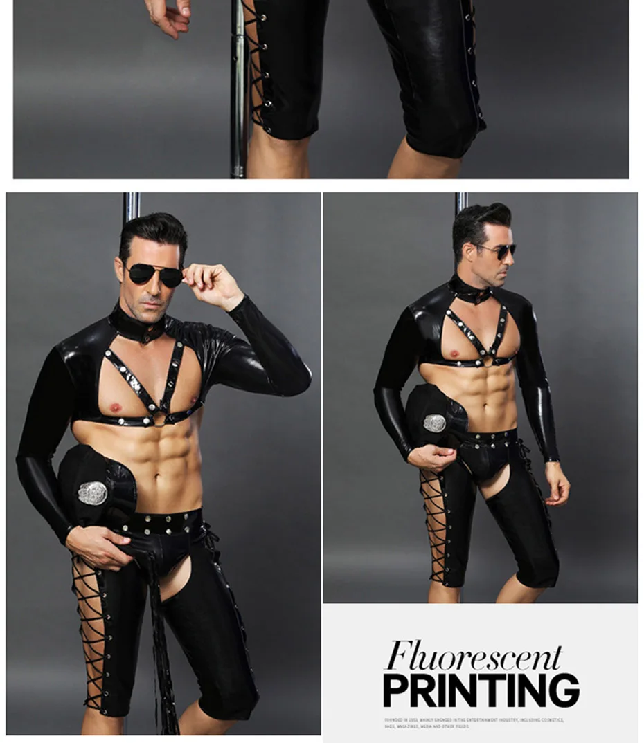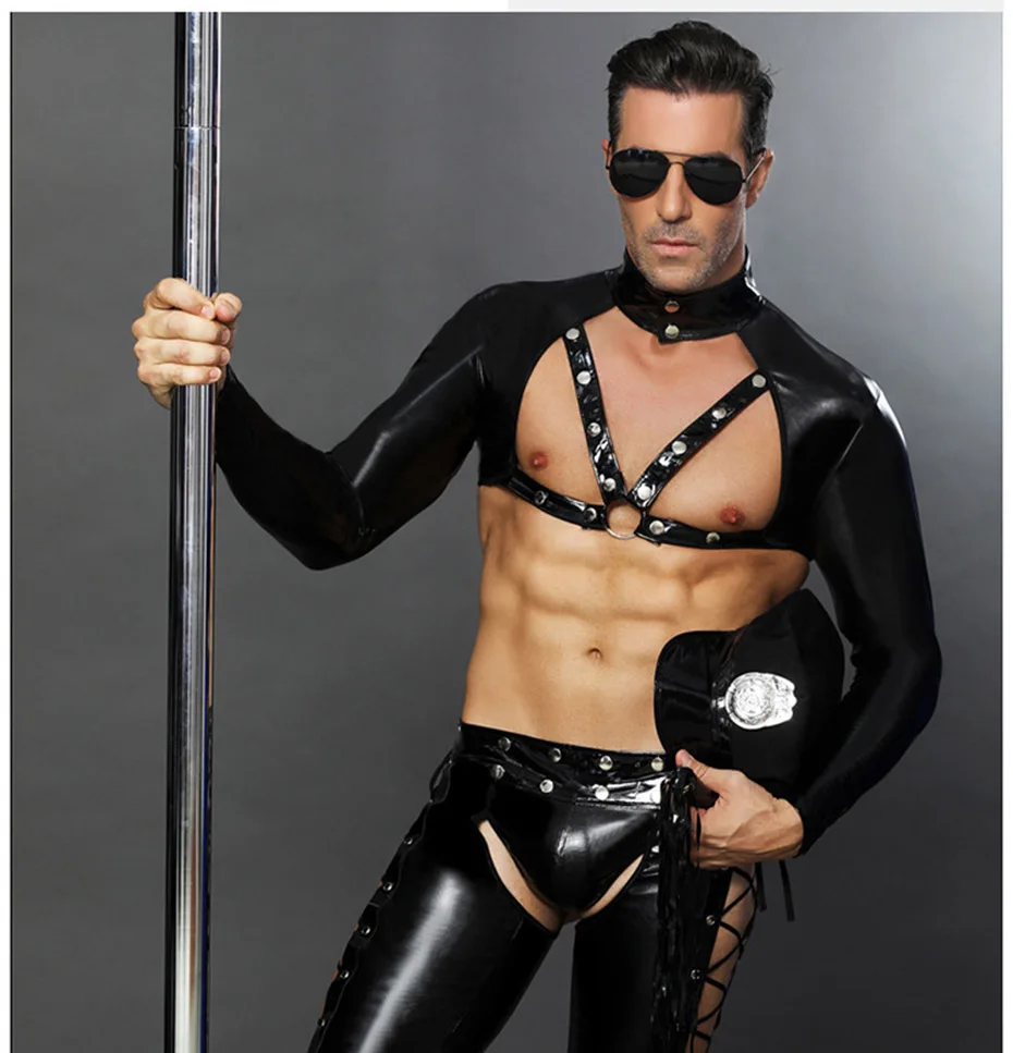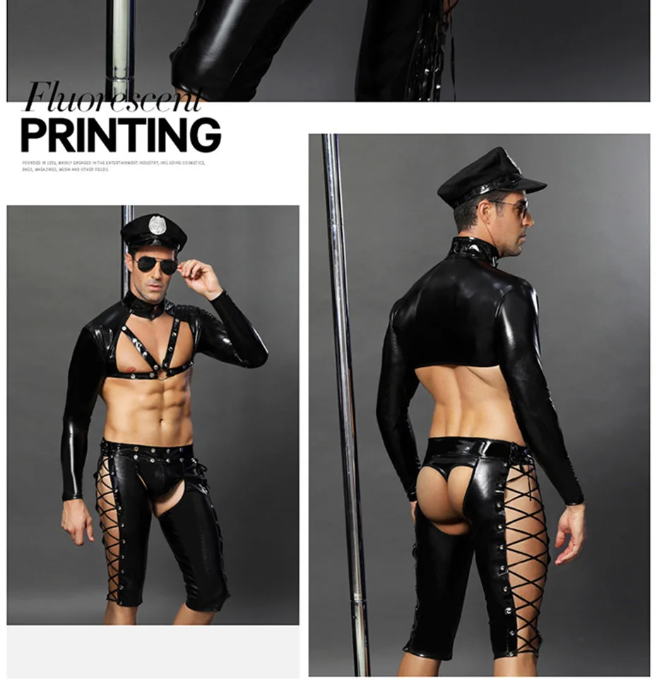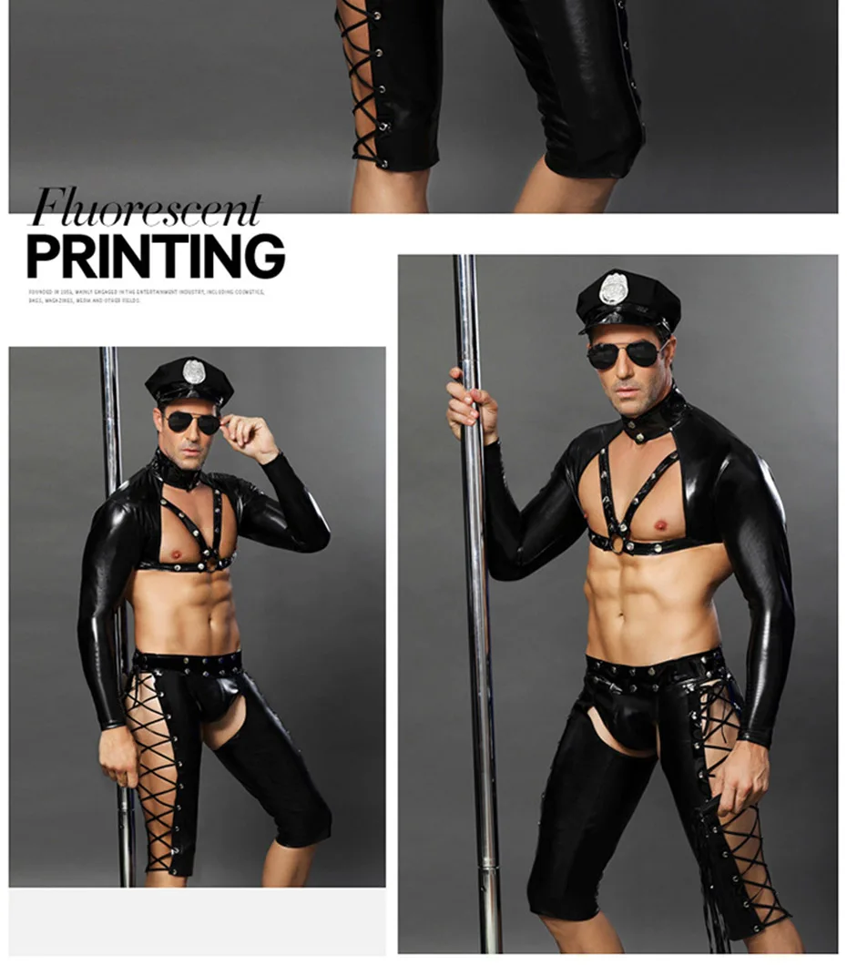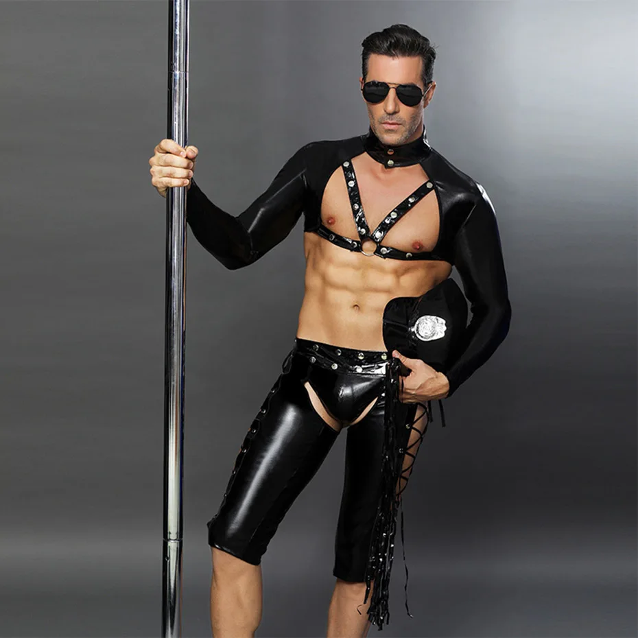 Ролевые игры Мужская сексуальная кожаная полицейская униформа коспл...
