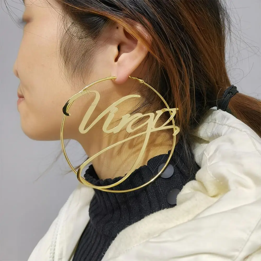 Серьги-гвоздики из нержавеющей стали для мужчин и женщин, украшения сделай сам в виде букв с медной катушкой, сверкающие крупные с надписью из нержавеющей стали