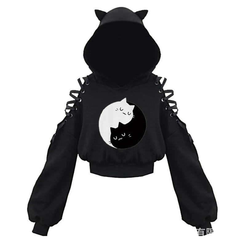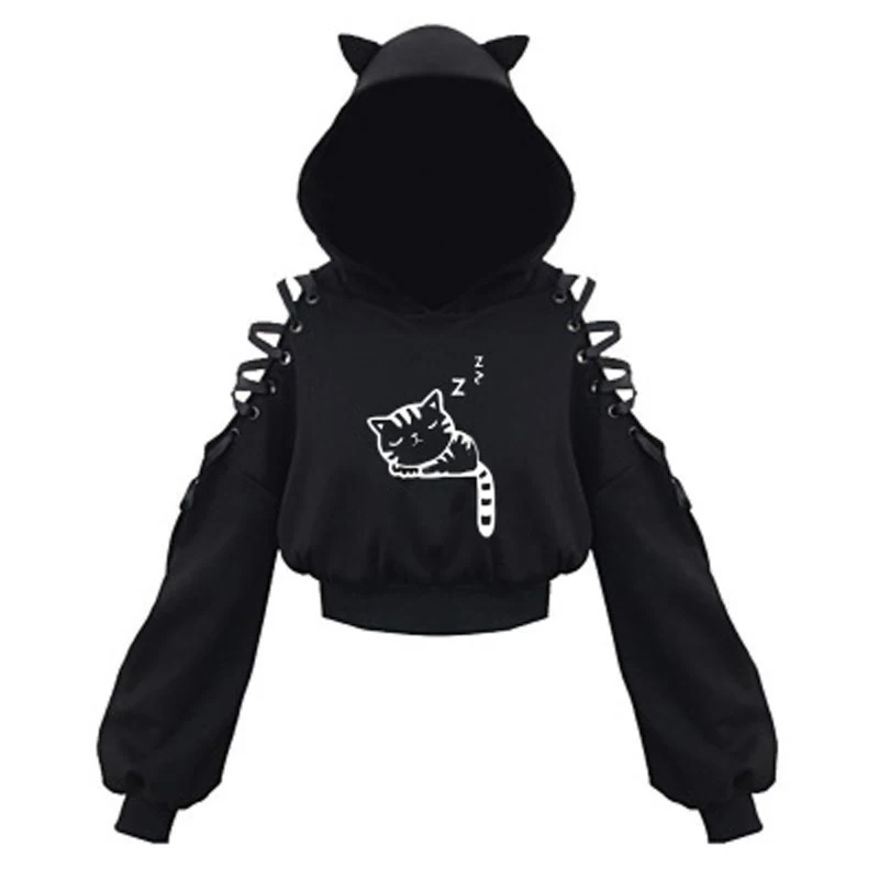 Костюм для косплея на Хэллоуин для женщин, толстовка с капюшоном и принтом кота, кавайная Одежда для девочек, плащ с мультяшным принтом, тонкий черный топ, 5XL, большие размеры
