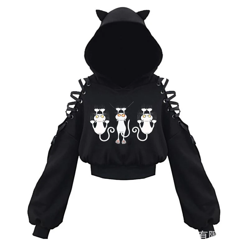 Женская толстовка с капюшоном, модная толстовка с кошачьими ушками,...