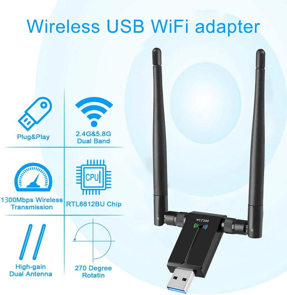 2,4G5.G Wifi USB адаптер 1300 Мбитс RTL8812BU двухдиапазонный для ПК черный Ethernet WiFi ключ внешняя антенна Приемник сетевая карта