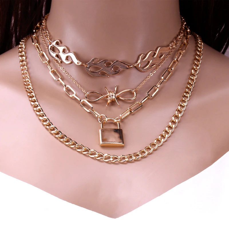 Многослойное Золотое толстое металлическое ожерелье, модные готические украшения, женское ожерелье в стиле панк, подарочные аксессуары, 2020