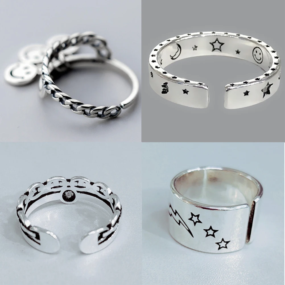 Кольца женские медные регулируемые, серебристого цвета, в стиле панк