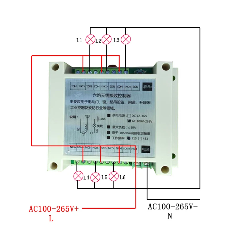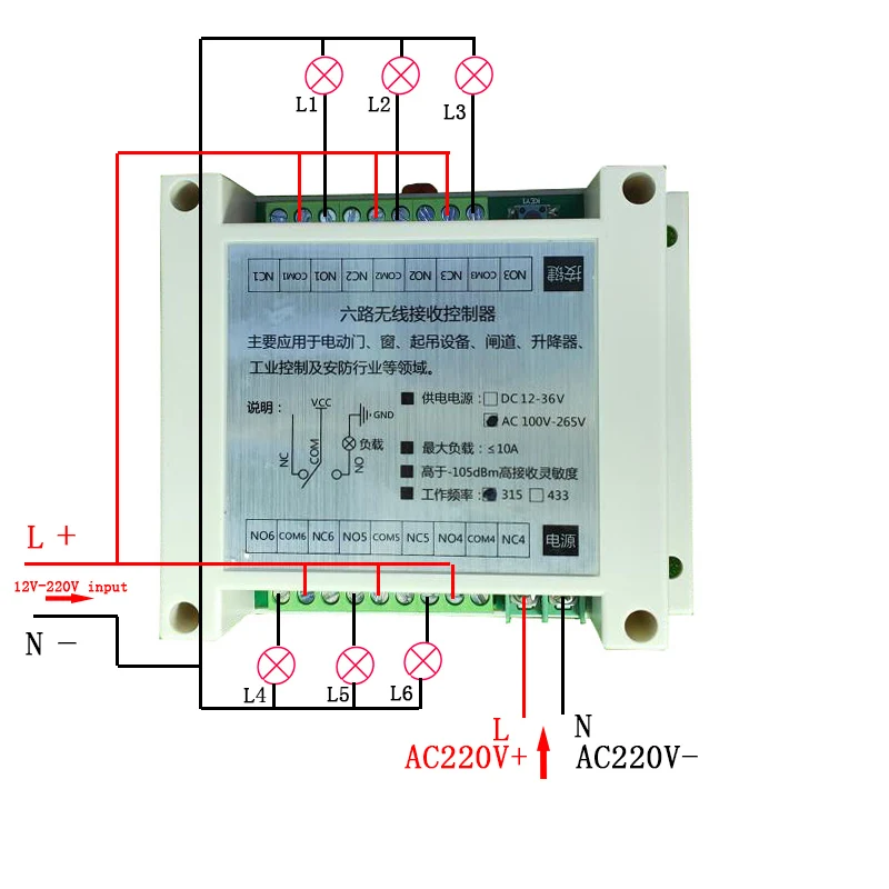 Переключение ---------------- нажмите кнопку передатчика 1 в течение 1 времени, реле приемника 1th включено, нажмите кнопку 1 снова, реле приемника 1th выключено, те же 2/3/4/5/6 являются независимыми.