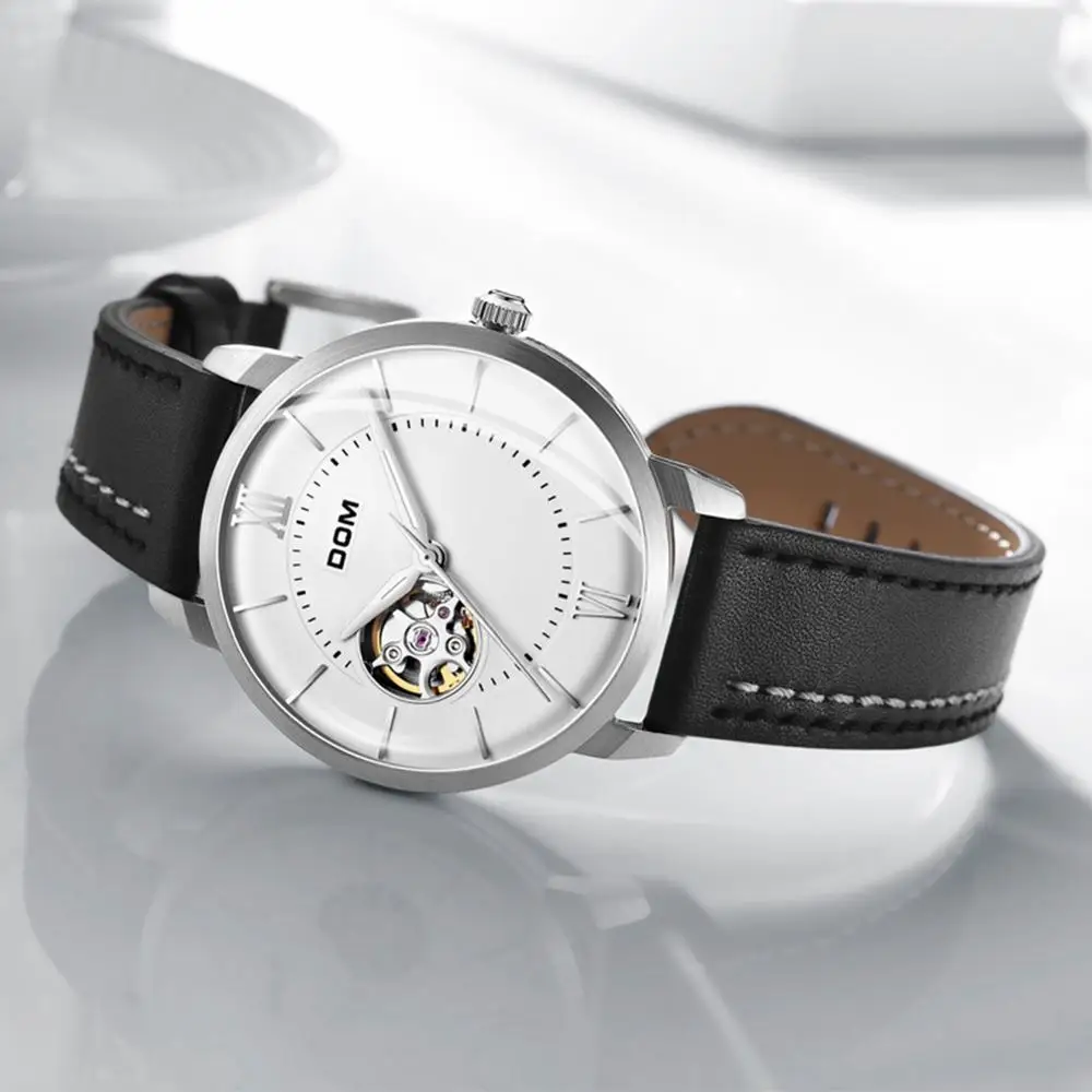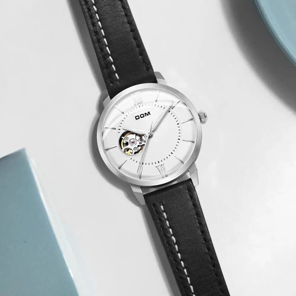 Роскошные мужские часы DOM, модные механические часы с кожаным реме...