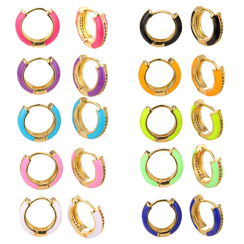 Модные маленькие серьги-кольца для женщин и девочек, разноцветные К...