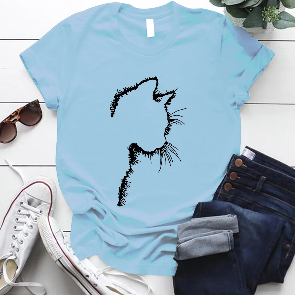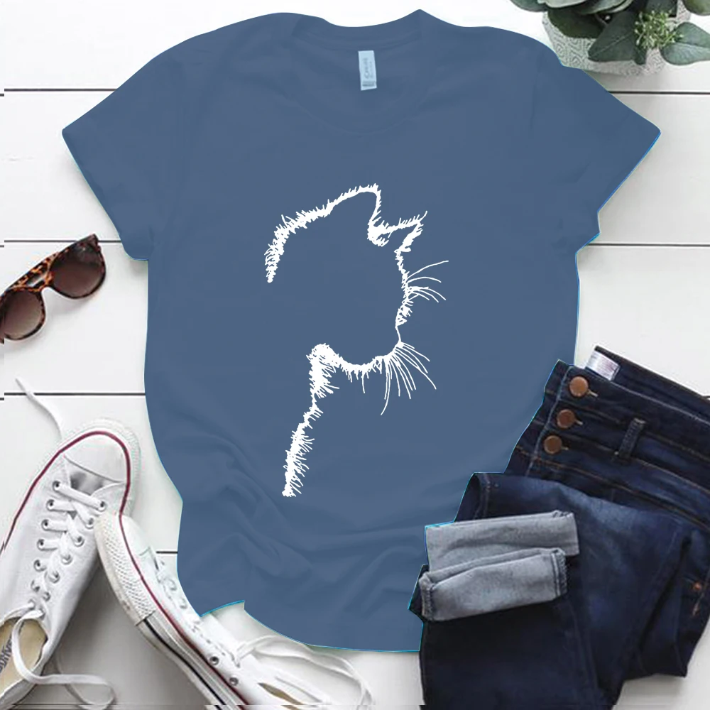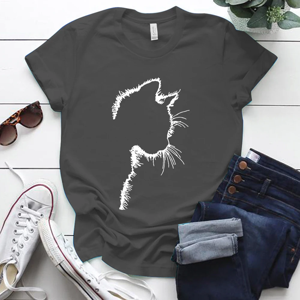 Футболка женская с круглым вырезом, Свободный Топ с принтом кота и ...