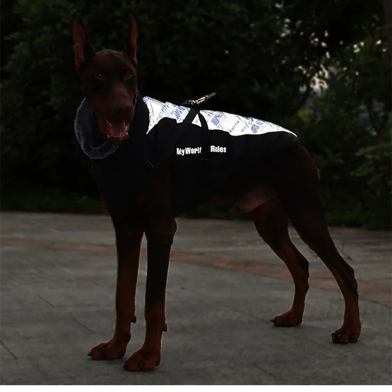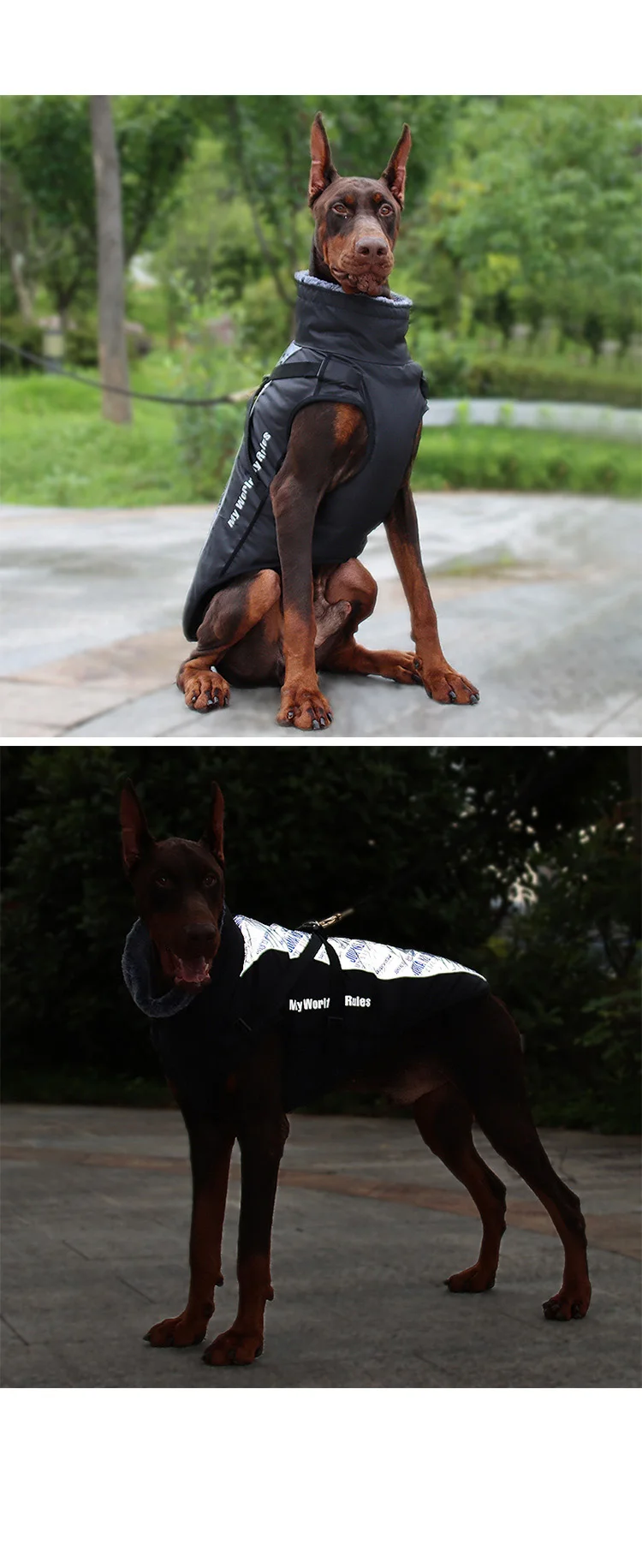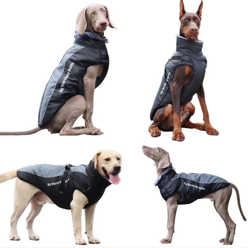 Новая куртка для собак, зимняя одежда для крупных собак, лабрадор, охотничий меховой ошейник, светоотражающий комбинезон, пальто, водонепроницаемая одежда для домашних животных