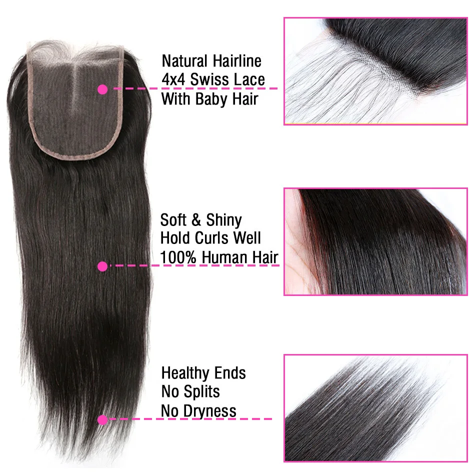 Luvin прямые кружевные застежки с детскими волосами, естественные волосы, бразильские человеческие волосы Remy 4x4 5x5, закрытые волосы для черных женщин