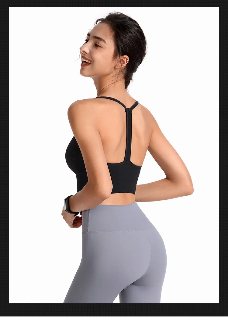 Удобный спортивный бюстгальтер с U-образным вырезом, Красивая Открытая спина, майка для йоги, Быстросохнущий дышащий кроп-топ для бега, для женского тренажерного зала