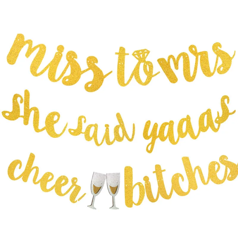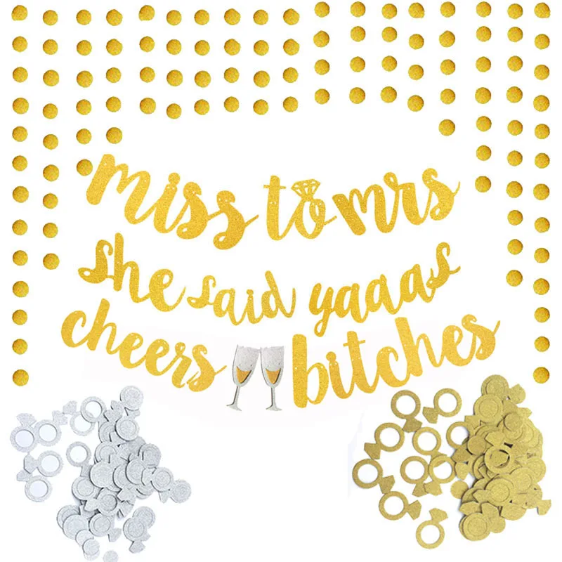 Свадебные плакаты мисс миссис сказала Yaaas кольцо с бриллиантом блестящие конфетти висит флаг Свадебная вечеринка Декор ура Суки