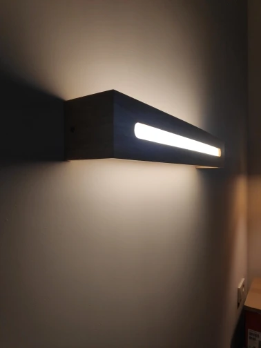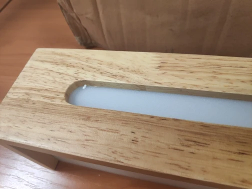 Посылка пришла через месяц в отделение почты. Запаковано хорошо, все целое. Светильник смотрится хорошо. Качество нормальное. Есть небольшие царапины на дереве и наплывы клея. Убрали ножом.