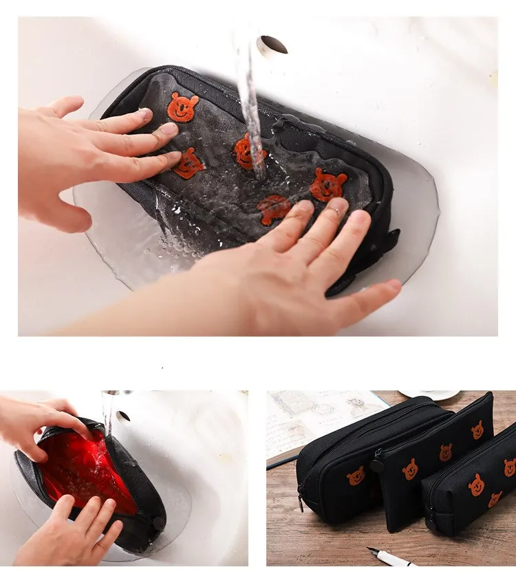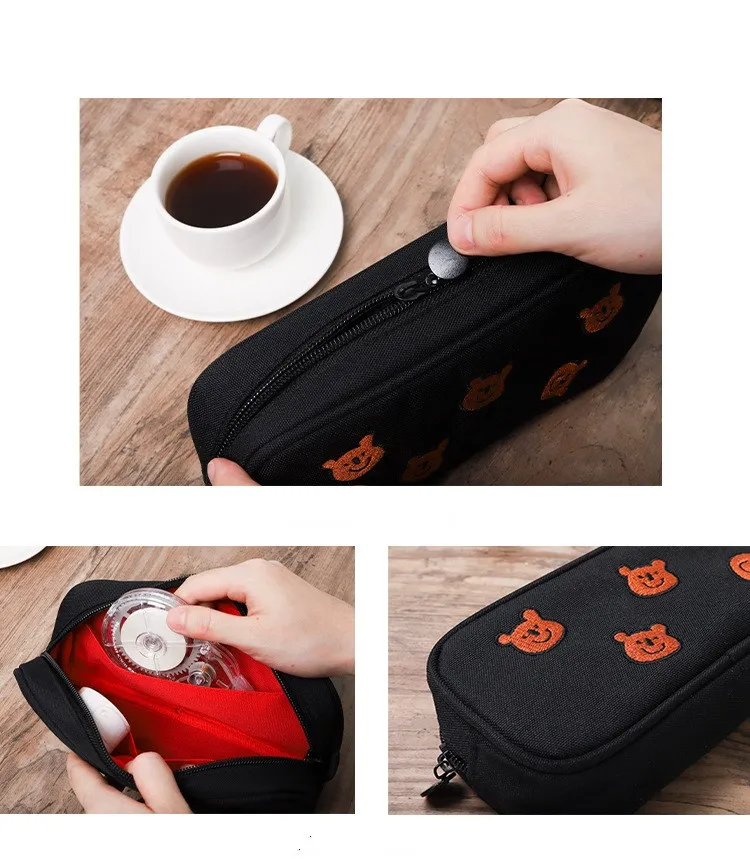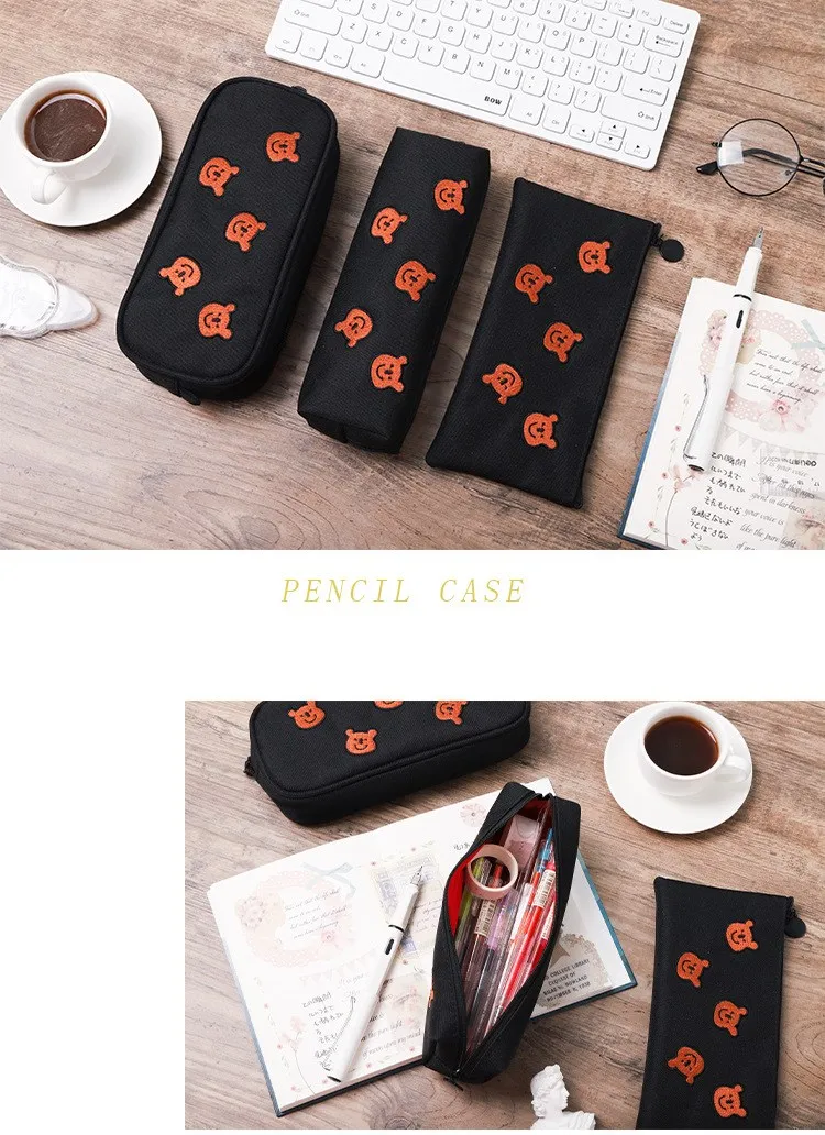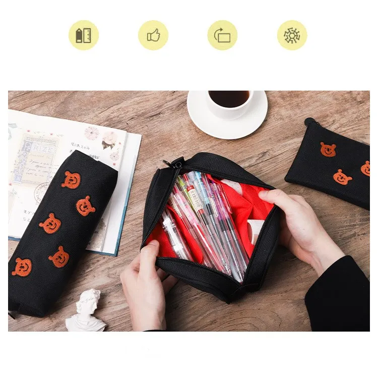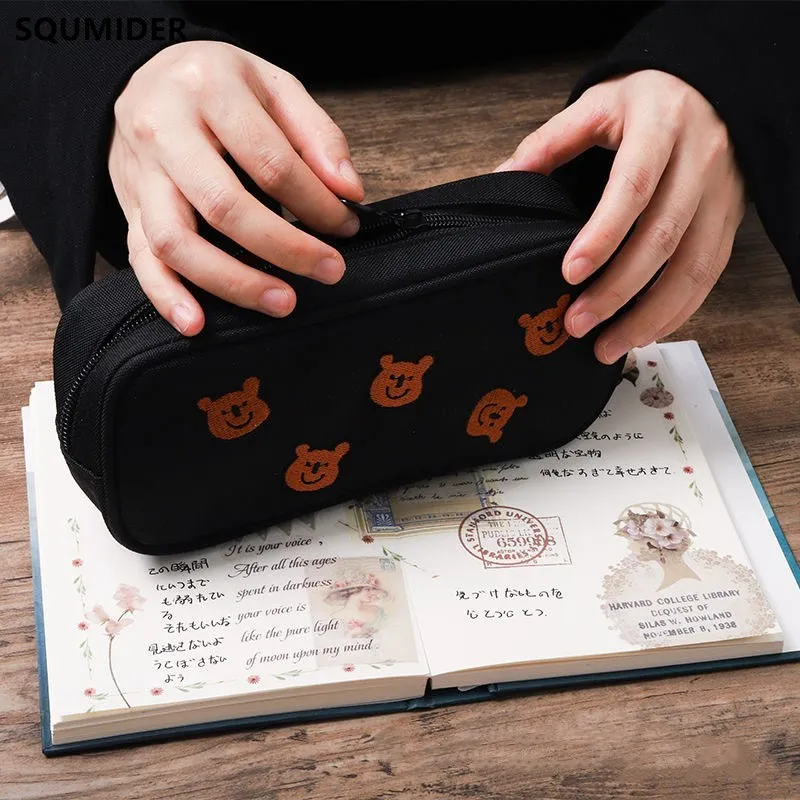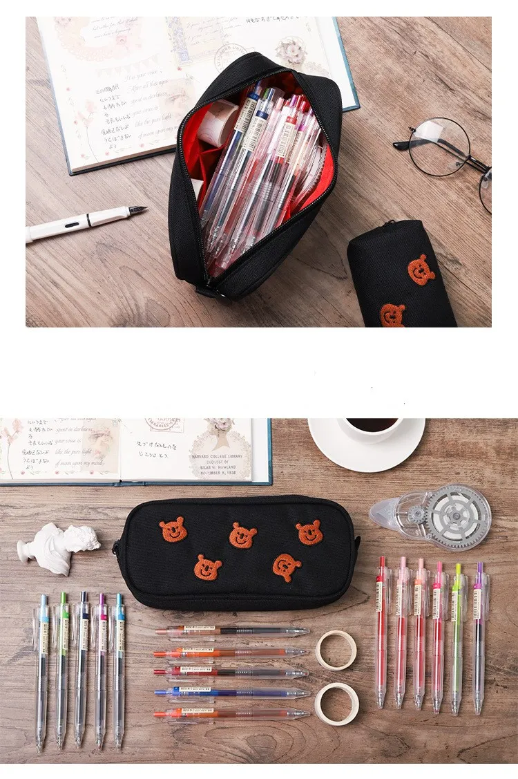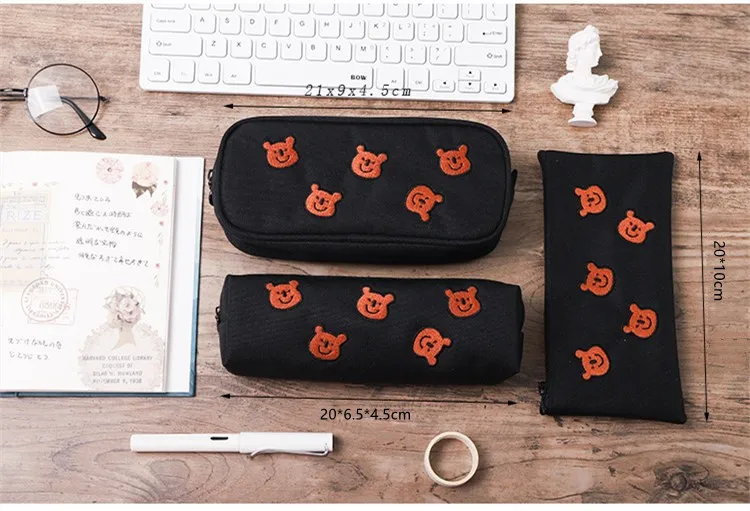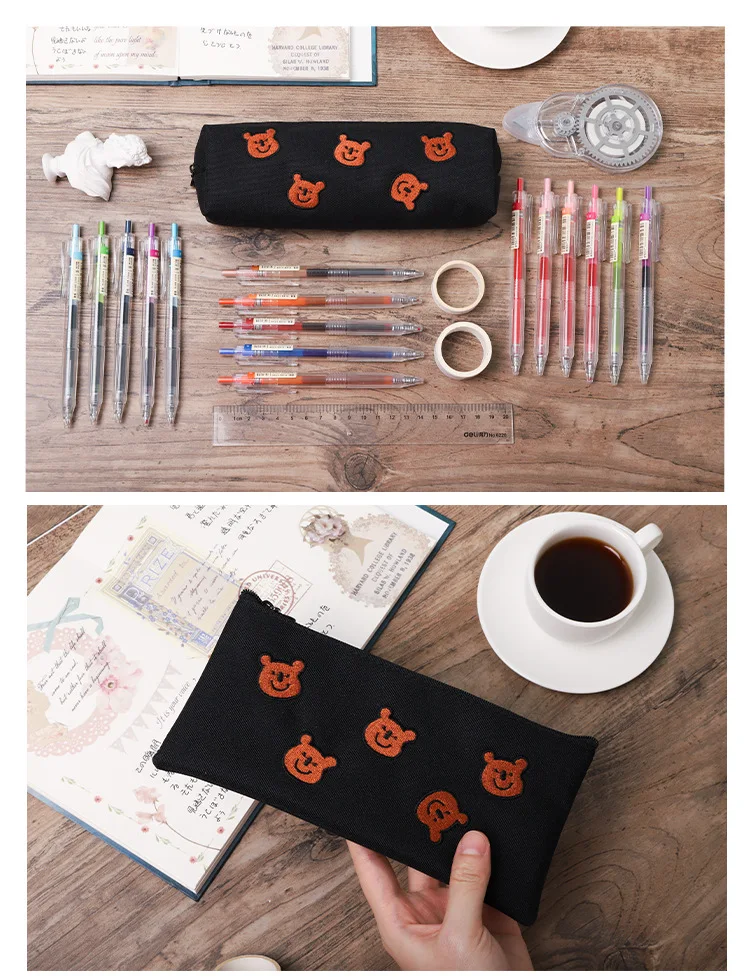 Чехол с ручной вышивкой милого медведяТри размера: большой квадратный чехол-карандаш с медведем: 21*9*4,5 смМаленький квадратный чехол-карандаш с медведем: 20*6,5*4,5 смЕмкость: 30-40 ручекСтруктура: один слойУзор: медвежонокИспользование: чехол для карандашей/сумка для храненияТолпа: Дети/Студенты/мальчики и девочки плоский чехол-карандаш: 20*10 см