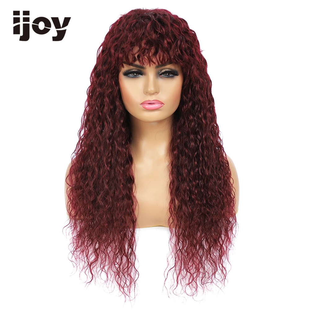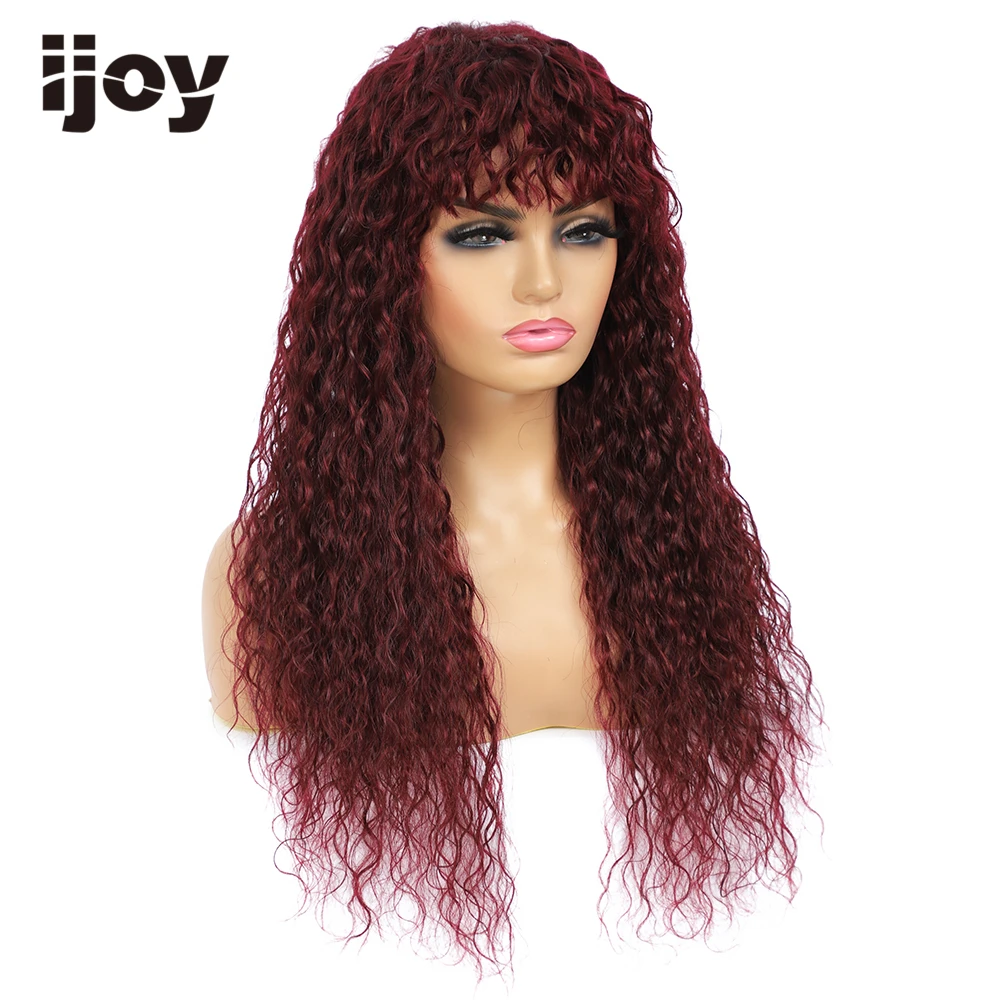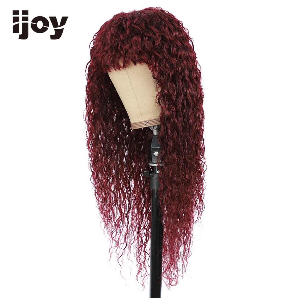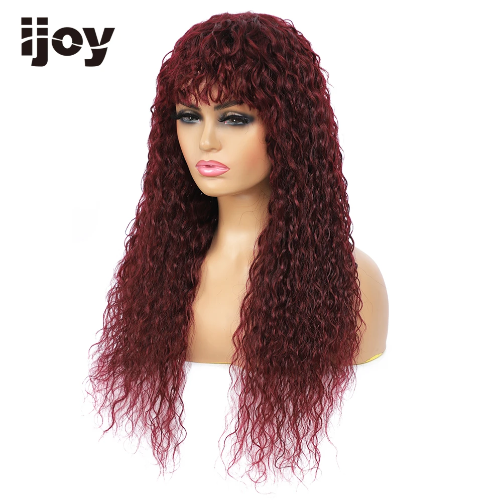 Парик из человеческих волос с челкой, волосы с водной волной, окрашенные, 99J, бордовые, красные, бразильские волосы, полноразмерные парики для черных женщин, не Реми, IJOY