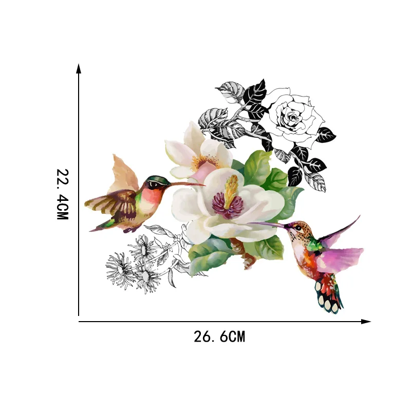 ZTTZDY, 23,9 х 23,4 см, нарисованные вручную цветы и птицы, наклейк...