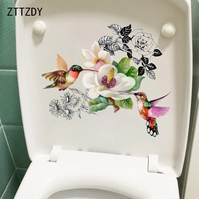 ZTTZDY 21,2*14,5 см тщательные цветы и птицы стикер для туалета, ва...