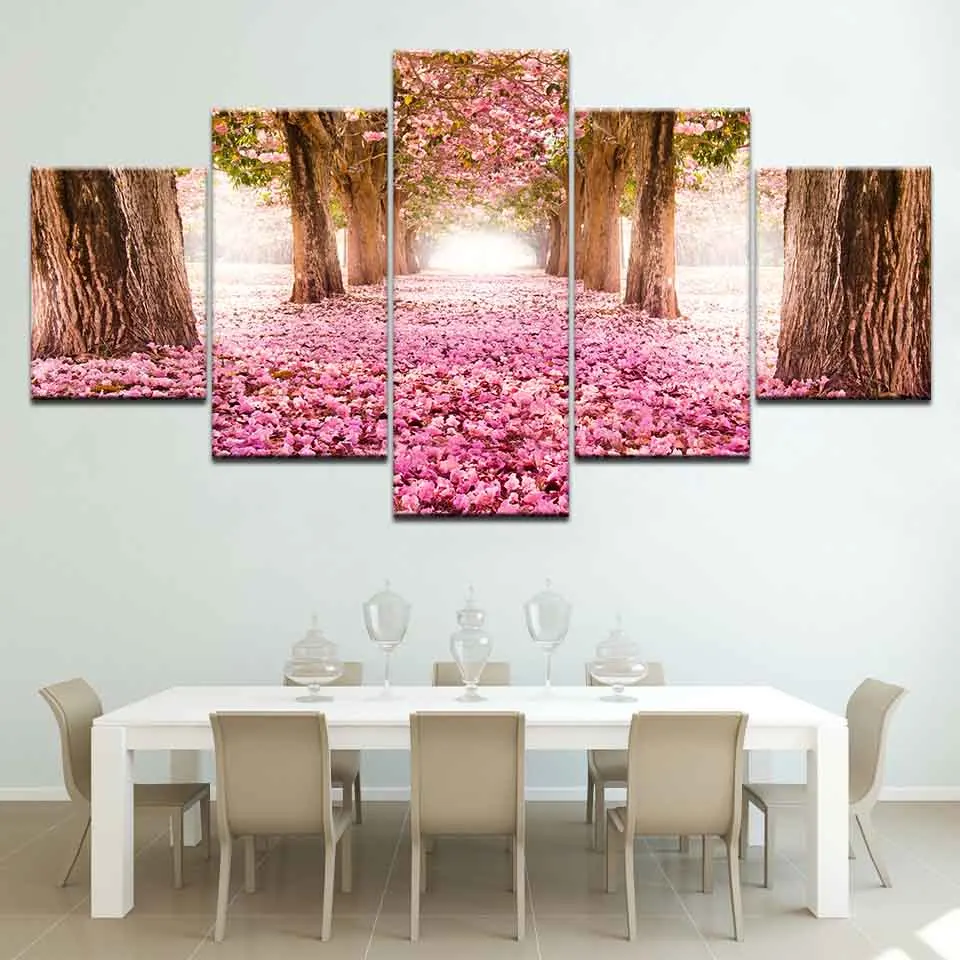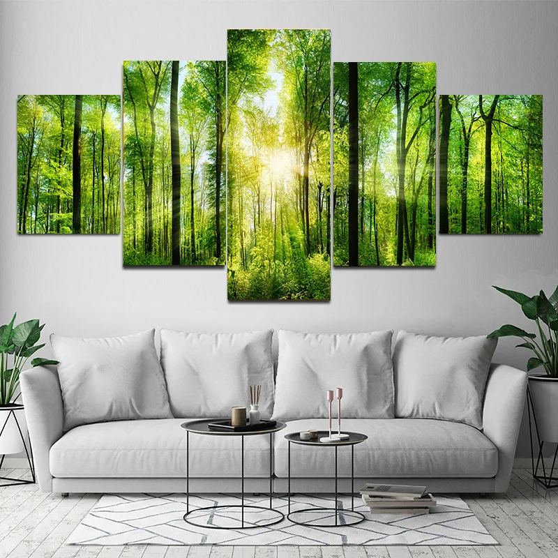 5 панелей, пейзаж, черно-белый, красный, зеленый лист дерева, холст, живопись, плакаты и принты, настенные картины, домашний декор, без рамки