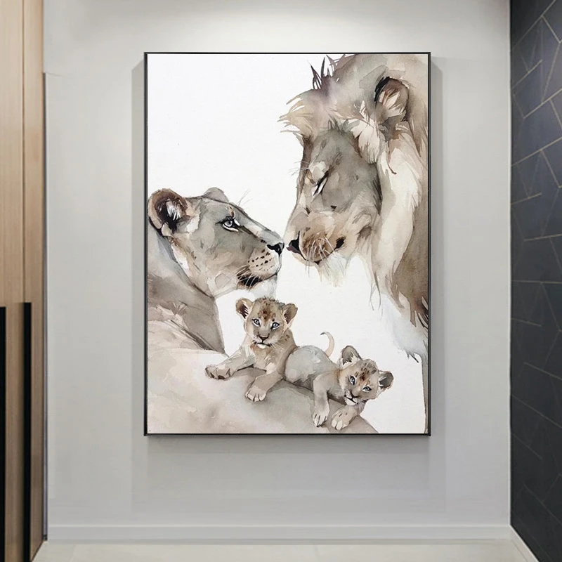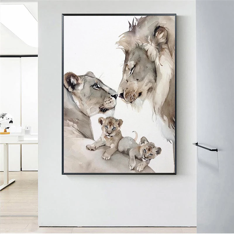 Абстрактная картина льва семейный Холст Современные плакаты и принты настенные картины для гостиной украшение дома Куадрос