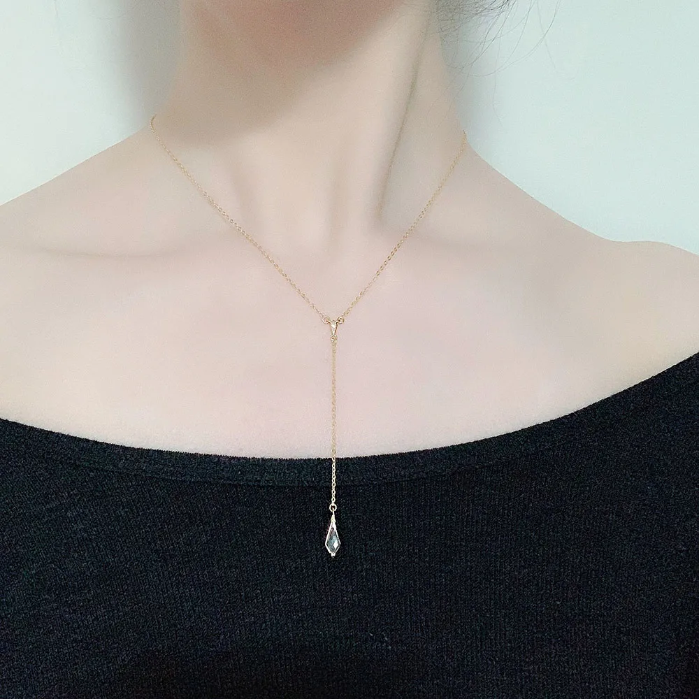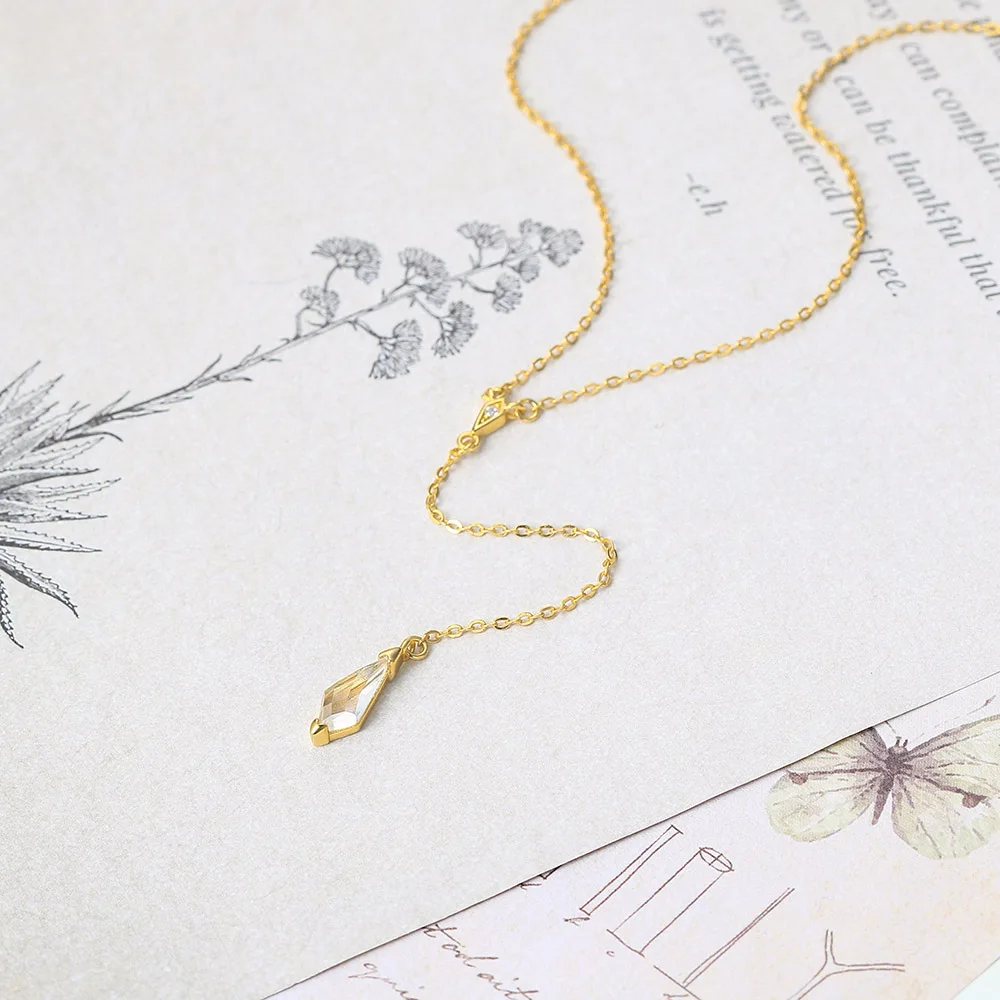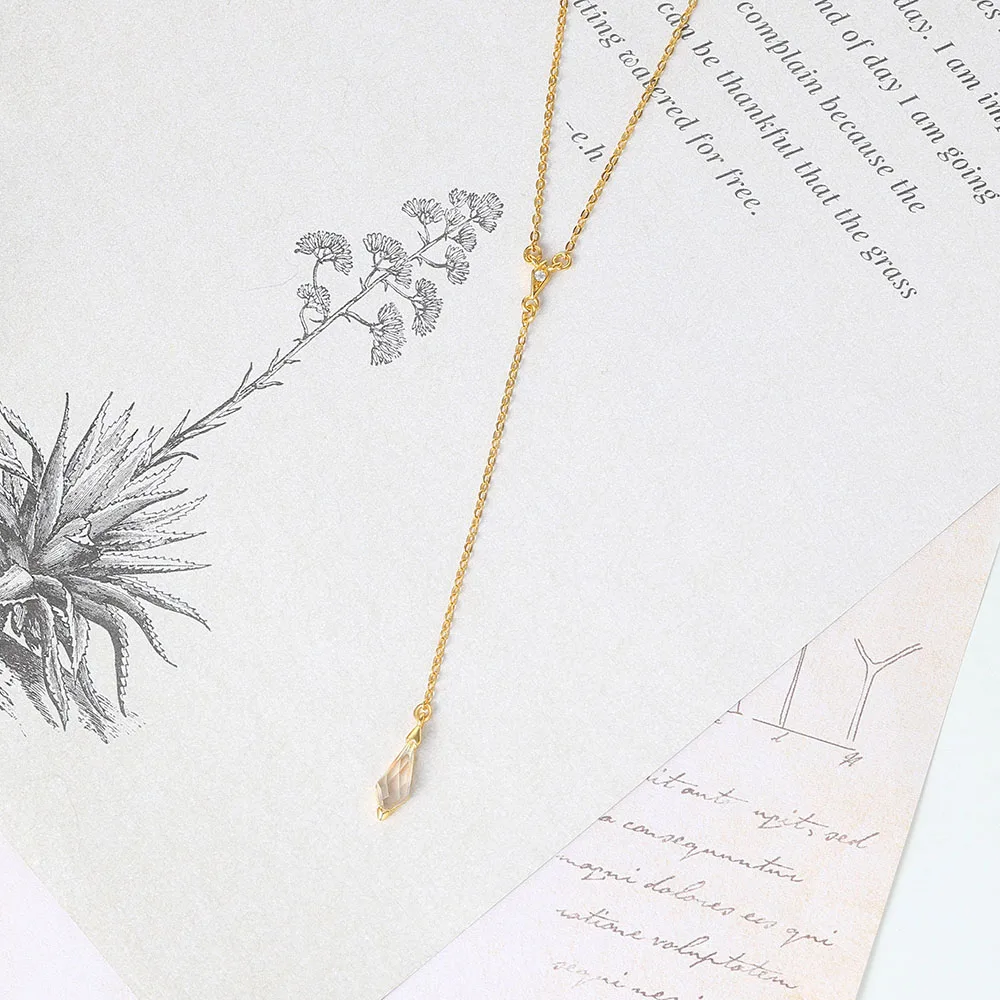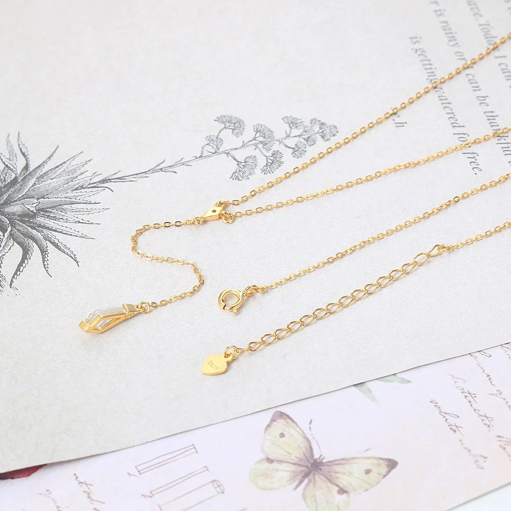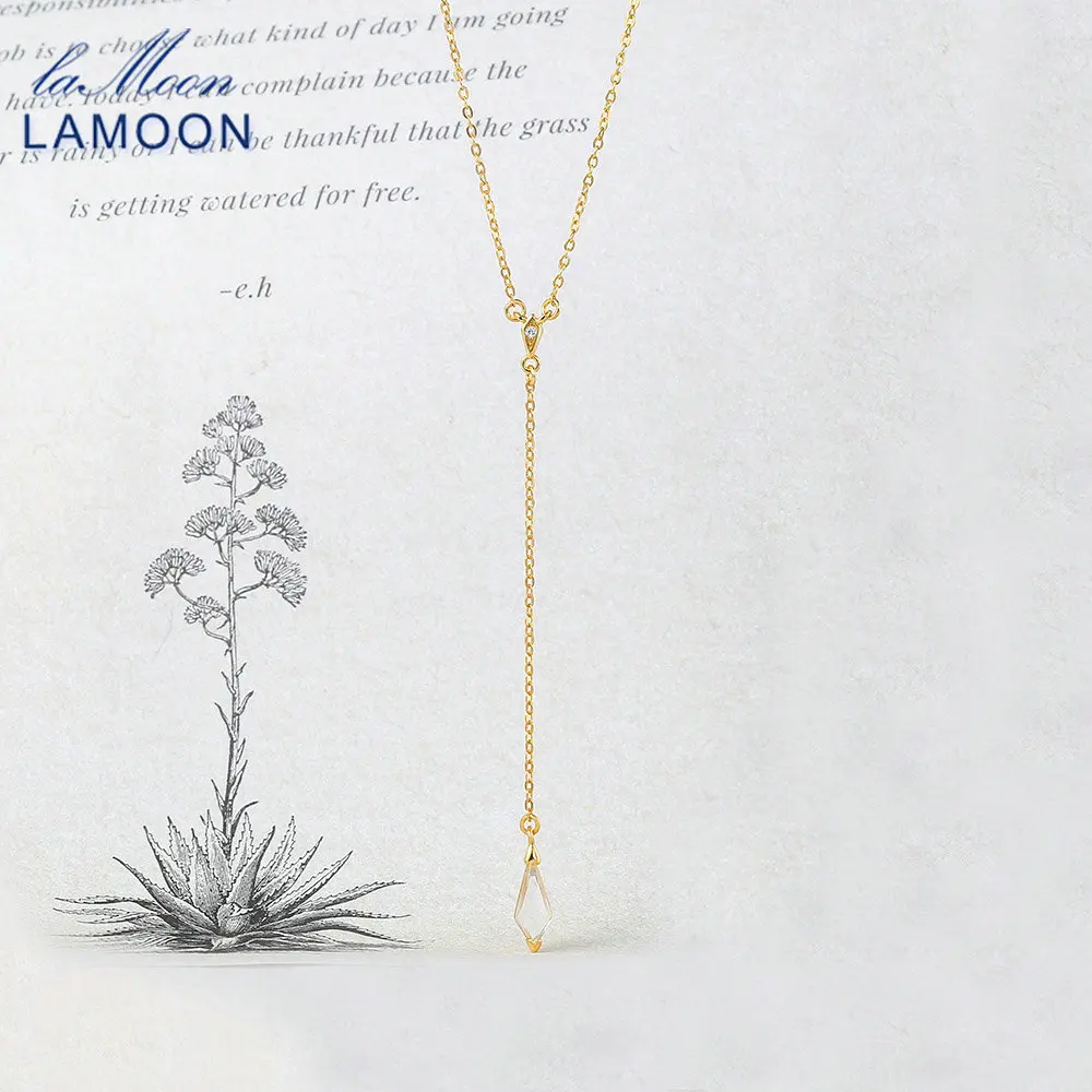LAMOON винтажное ожерелье из серебра 925 пробы для женщин бриллиант натуральный белый кристалл Длинная подвеска 14K позолоченные изысканные ювелирные изделия LMNI112