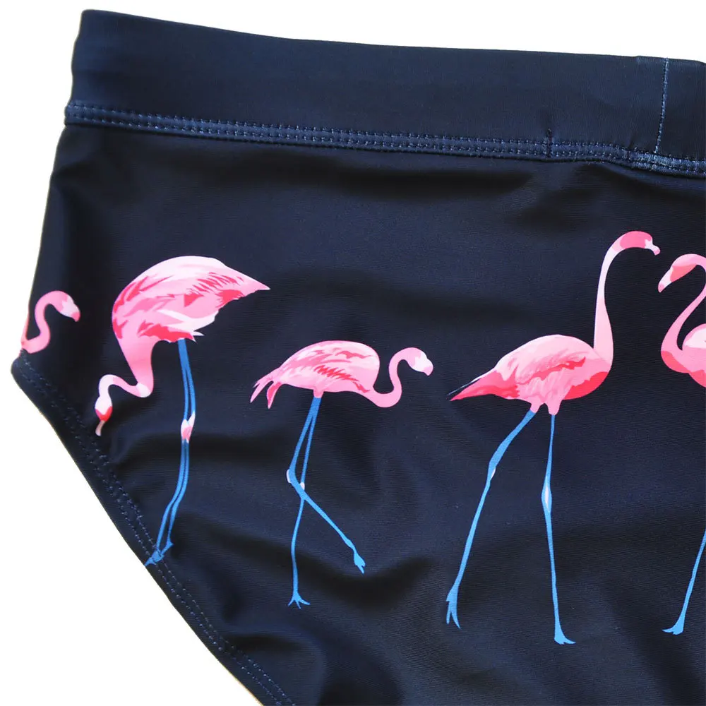 Купальник мужской с принтом фламинго, пикантные пляжные шорты с чаш...