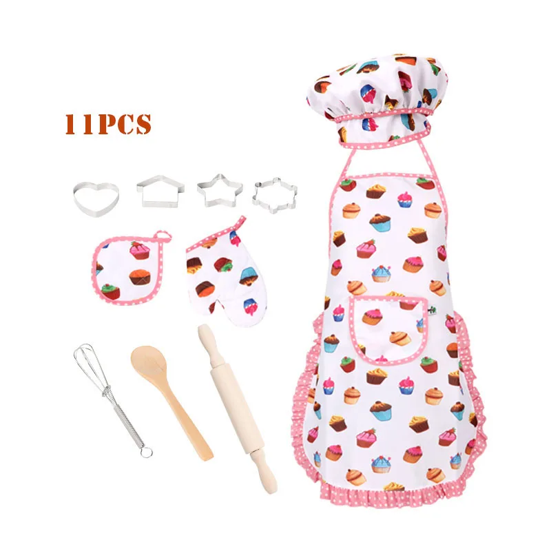 11 шт.компл. детский набор для готовки и выпечки, фартук для игры, ...
