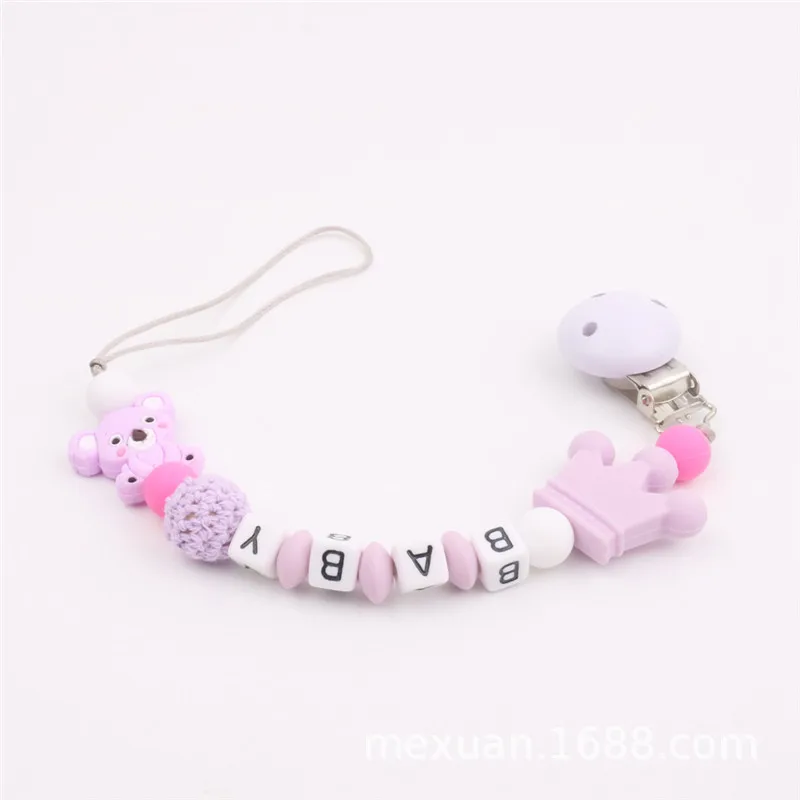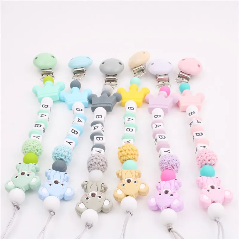 6 шт.лот, детские силиконовые соски с цепочкой, держатель, корона, животное, сердце, вязанные бусы, для новорожденных мальчиков и девочек, прорезыватель, пустышки, клипсы, игрушки