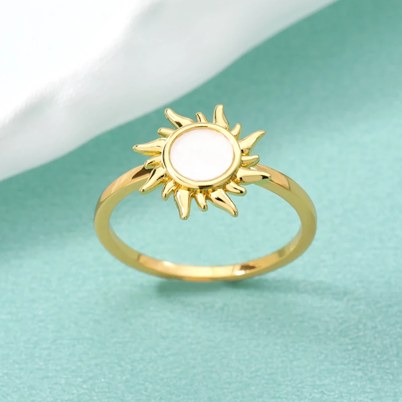 Кольцо женское круглое из нержавеющей стали с золотым логотипом, кольца для мужчин и женщин солнце, звезда, цветок, хороший подарок для девушек