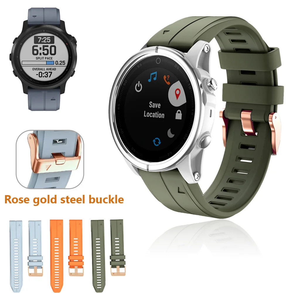 Ремешок из розового золота со стальной пряжкой для наручных часов, быстросъемный силиконовый браслет для Garmin Fenix 7S 5S Plus 6S 6SPro
