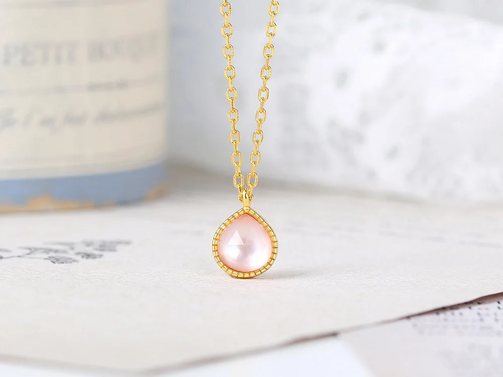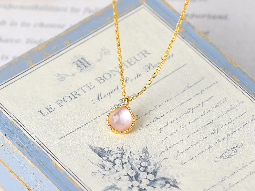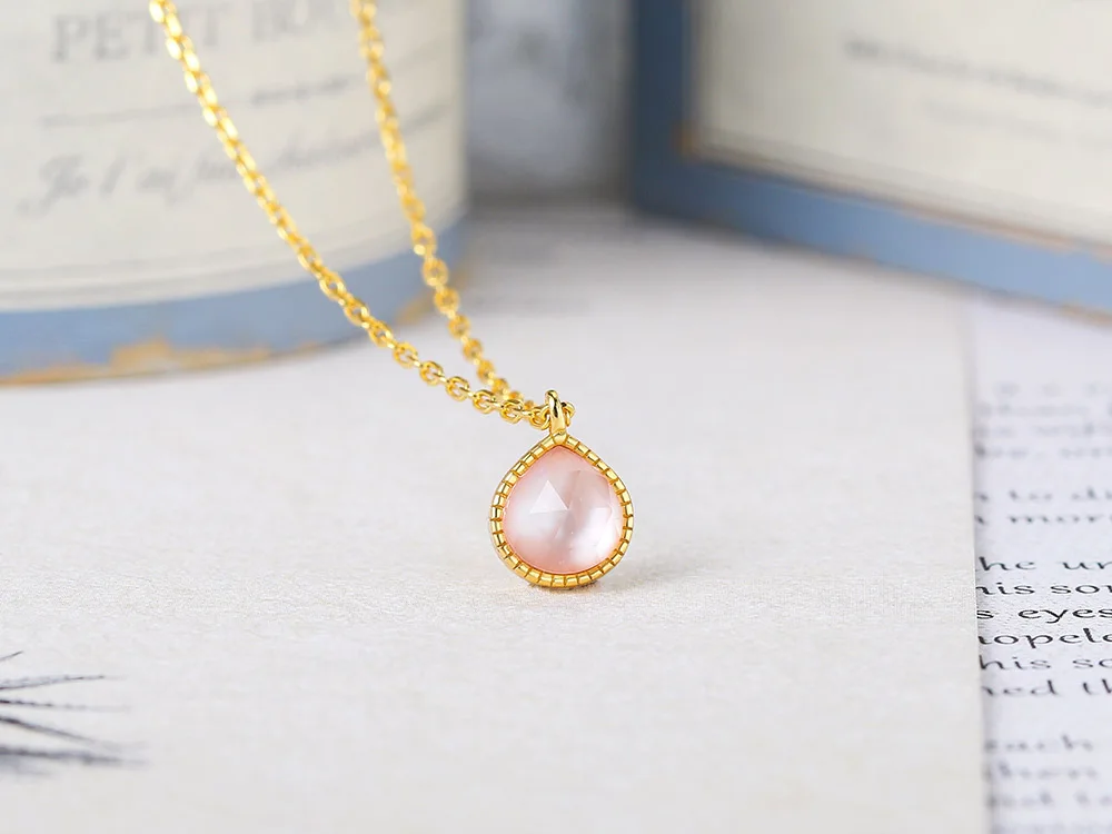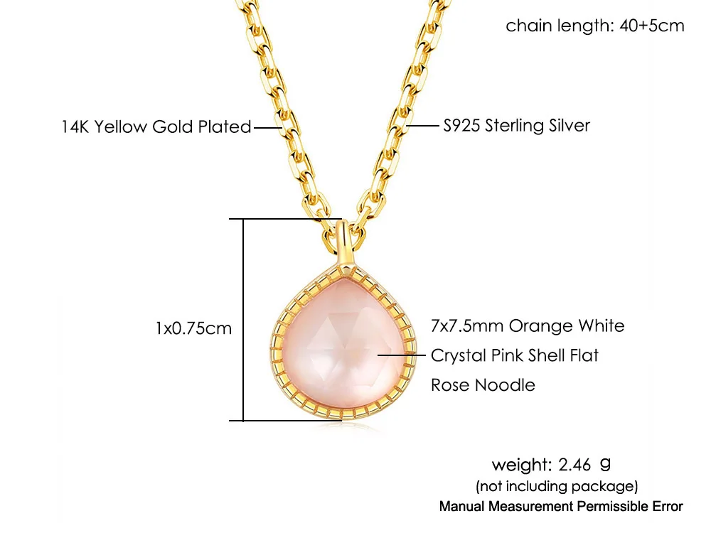 LAMOON Милая Подвеска для женщин милая персиковая форма белый кристалл ракушки 925 серебро 14K золото запатентованная ожерелье ювелирные изделия корейский LMNI092
