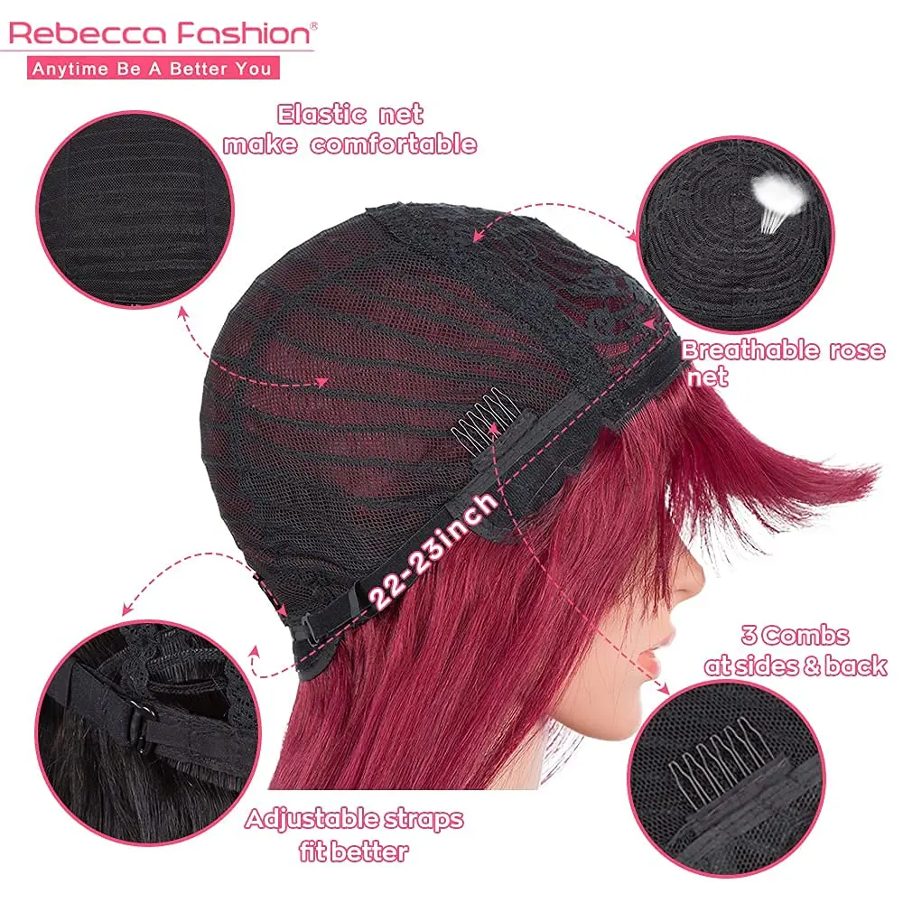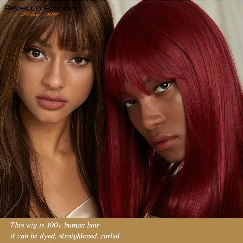 Прямые парики из человеческих волос Rebecca с челкой, парики из неповрежденных волос без клея, парики из человеческих волос с челкой для черных женщин, парики из бразильских волос