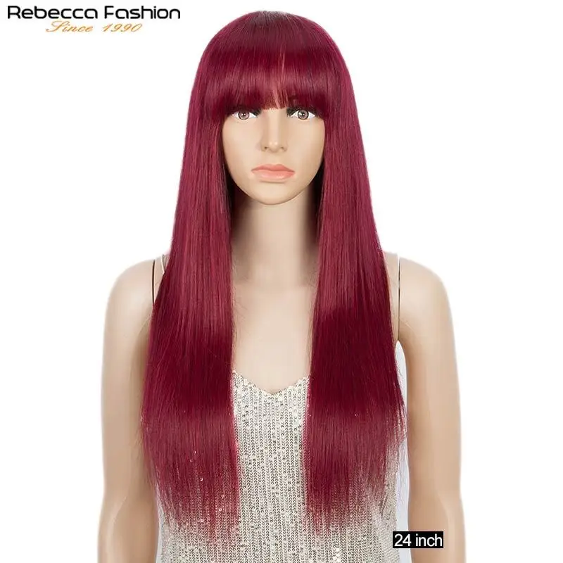 Бразильские прямые человеческие волосы Rebecca, парики с челкой, по...