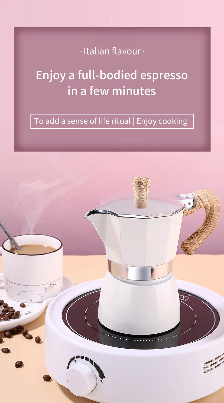 1 Простая в использовании кофеварка, подходит для всех газовых плит и электрических плит и пропановых кемпинговых плит. Делает кофе мокко на индукционной плите со стеклянной крышкой, но скорость нагрева очень медленная. Это простая в использовании варочная Эспрессо-машина, пароварка или кофеварка.