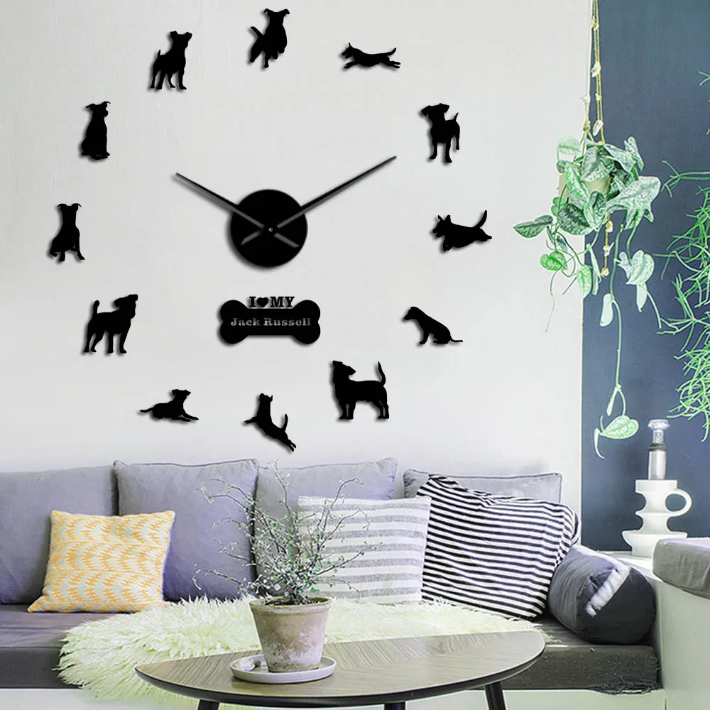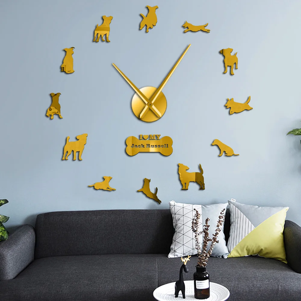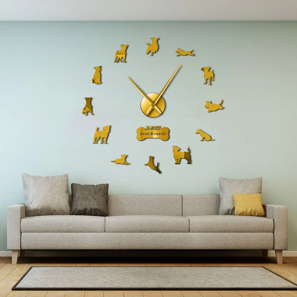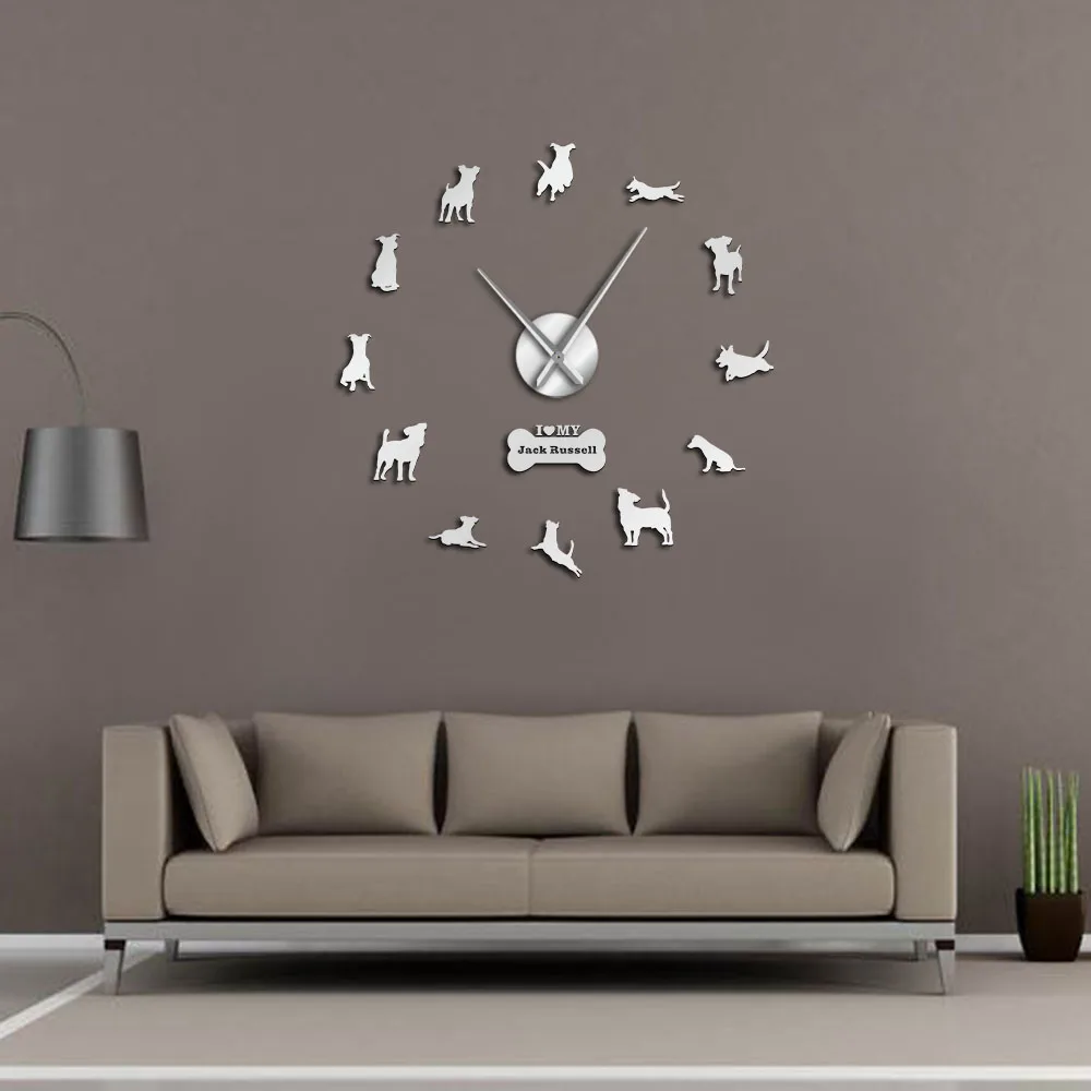 Настенные часы с зеркальным эффектом, современные большие часы с изображением лисы, охотничьей собаки, Джека Расселла терьера, для творчества, для подарка
