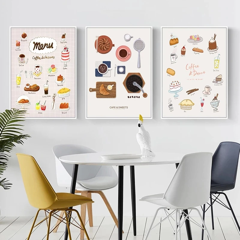 Картина на холсте с изображением милой еды, кофе, десерта, меню из ...