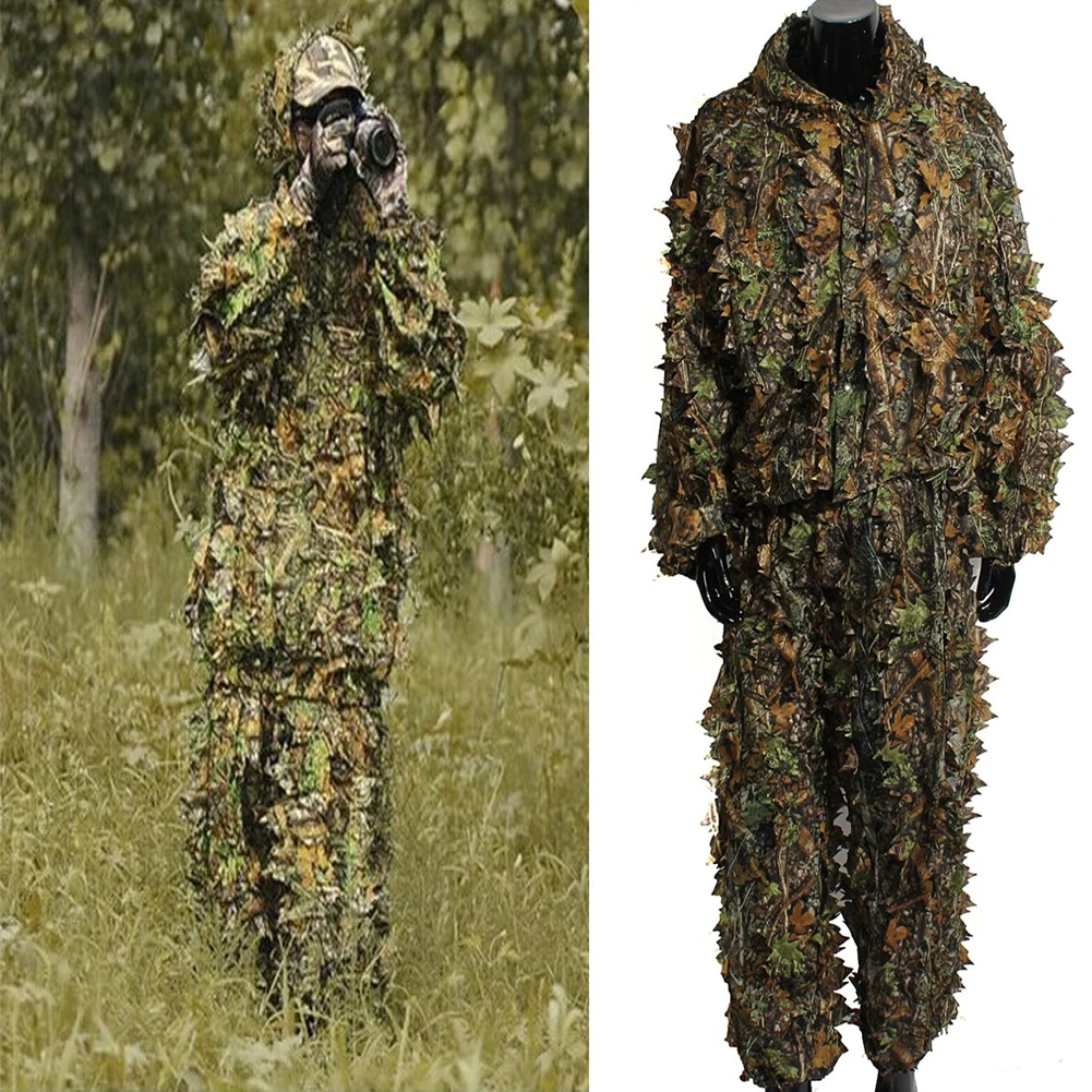 3D охотничий бионический куртки и штаны с камуфляжным принтом одежда для отдыха на открытом воздухе Охота наблюдения за птицами съемки игры кленовый камуфляж