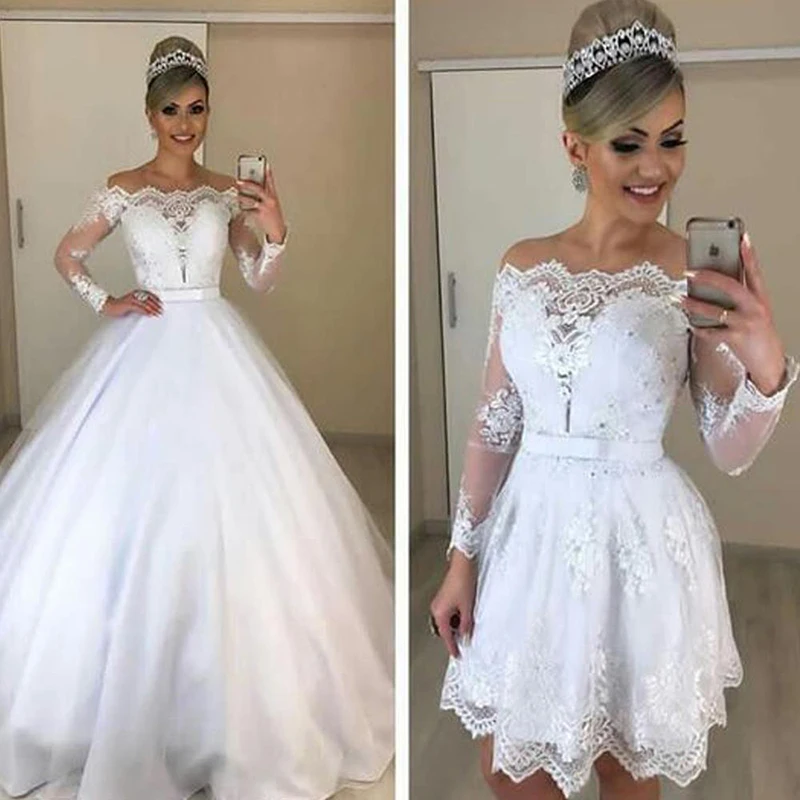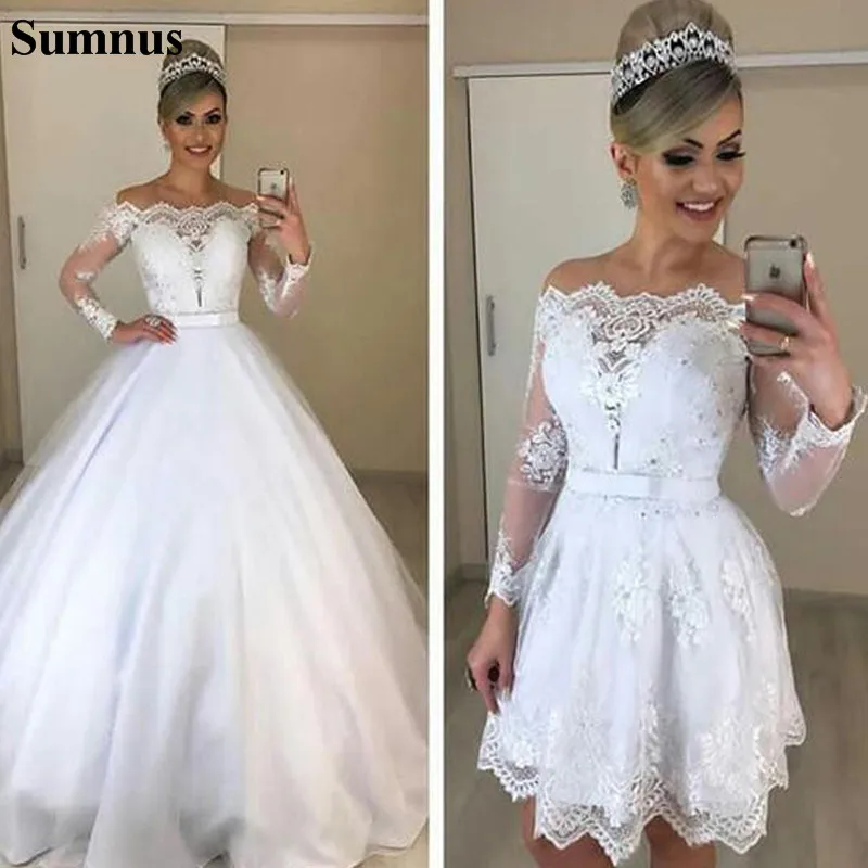 Sumnus белое свадебное платье со съемной юбкой 2021 с открытыми плечами с длинным рукавом в африканском стиле Свадебные платья Пляжные Свадебное платье