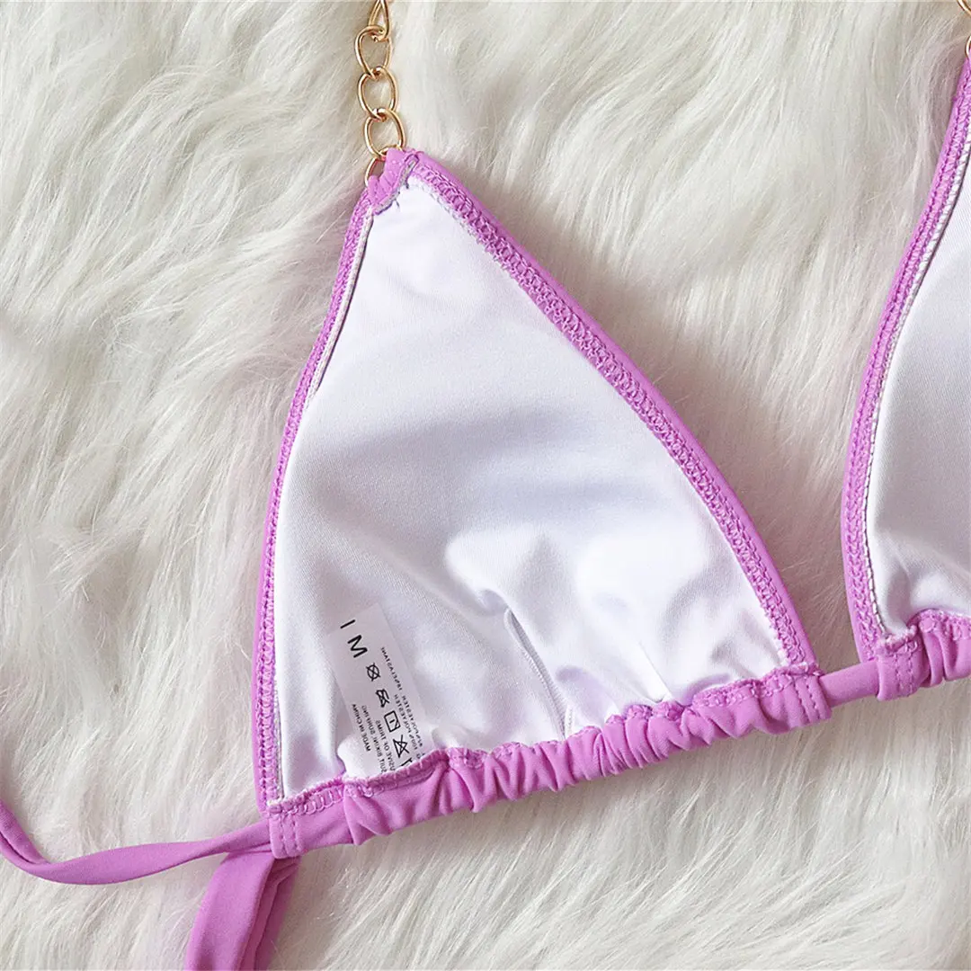 Сексуальное бикини с высоким вырезом и золотыми цепочками, женская ...