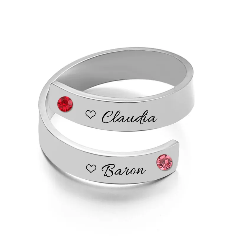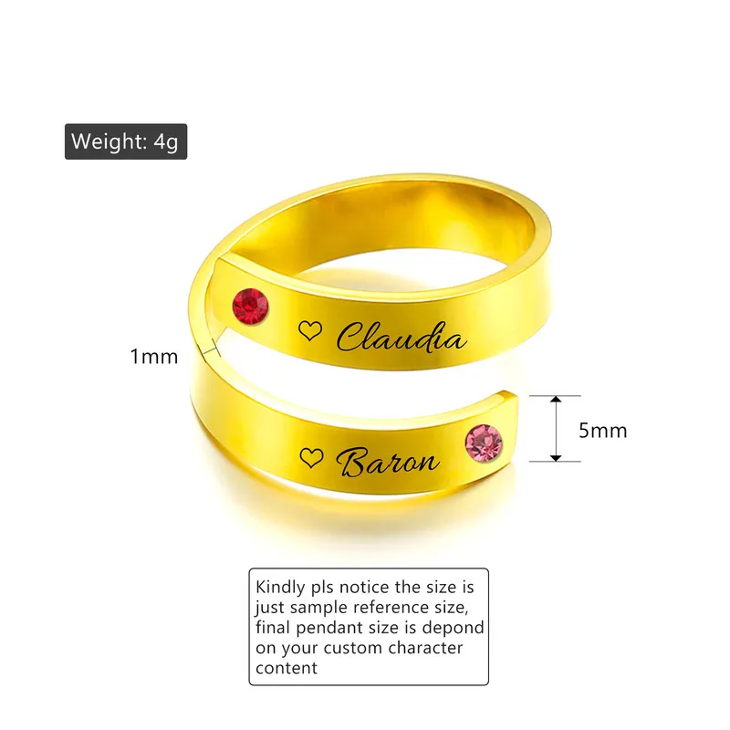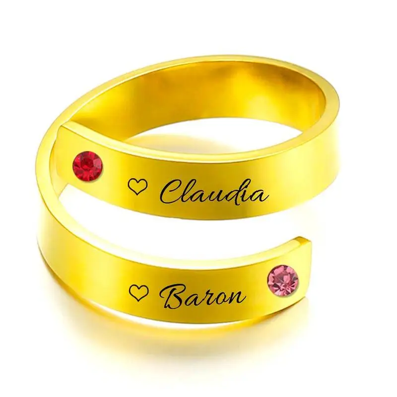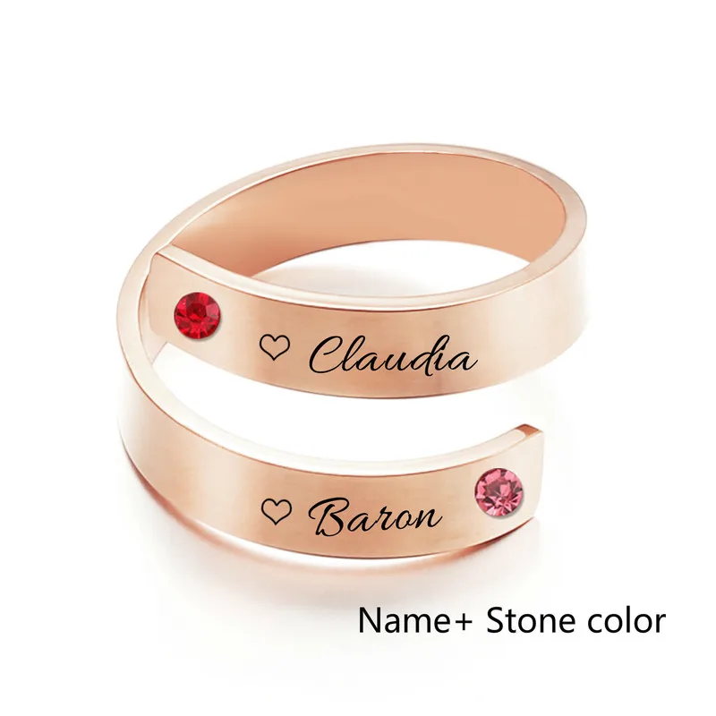 Пользовательское имя Камень Персонализированные Кольца для женщин из нержавеющей стали для пар с гравировкой табличка кольца, модные, подарок на день рождения