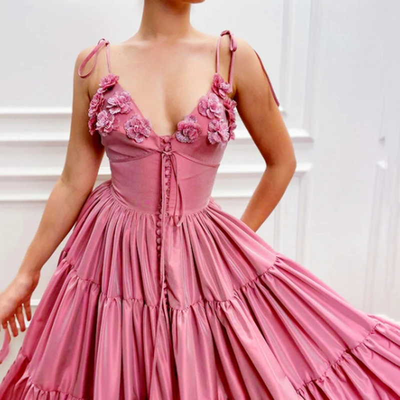 Платье-трапеция с V-образным вырезом UZN, элегантное розовое Плиссированное вечернее платье с открытой спиной, на бретелях-спагетти вечерние для выпускного вечера с цветами