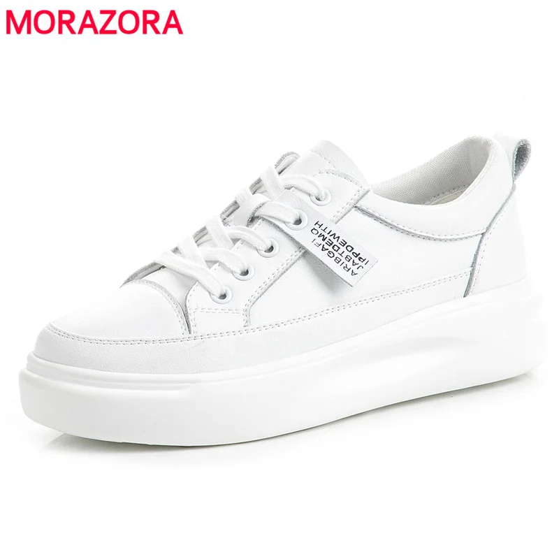 Женские кроссовки из натуральной кожи MORAZORA, Белые Повседневные кроссовки на плоской подошве, размер 34-41