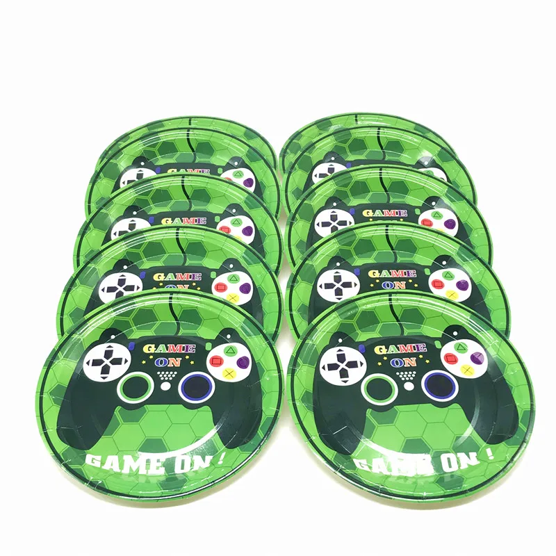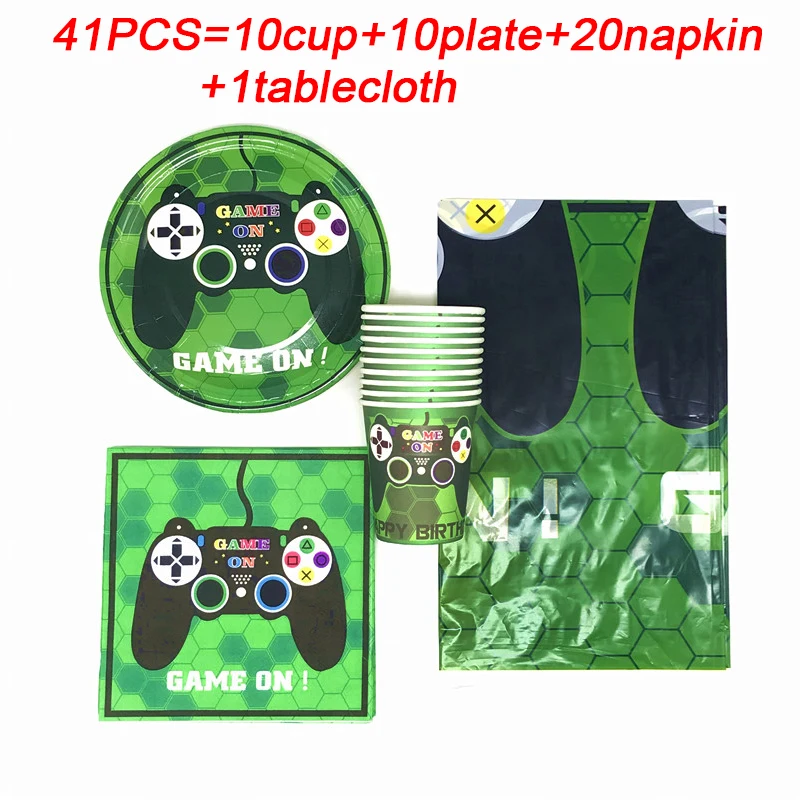 Зеленая тема игры, набор одноразовой посуды для вечевечерние, контроллер для видеоигр, салфетка, Детские праздничные принадлежности для мальчиков, украшение
