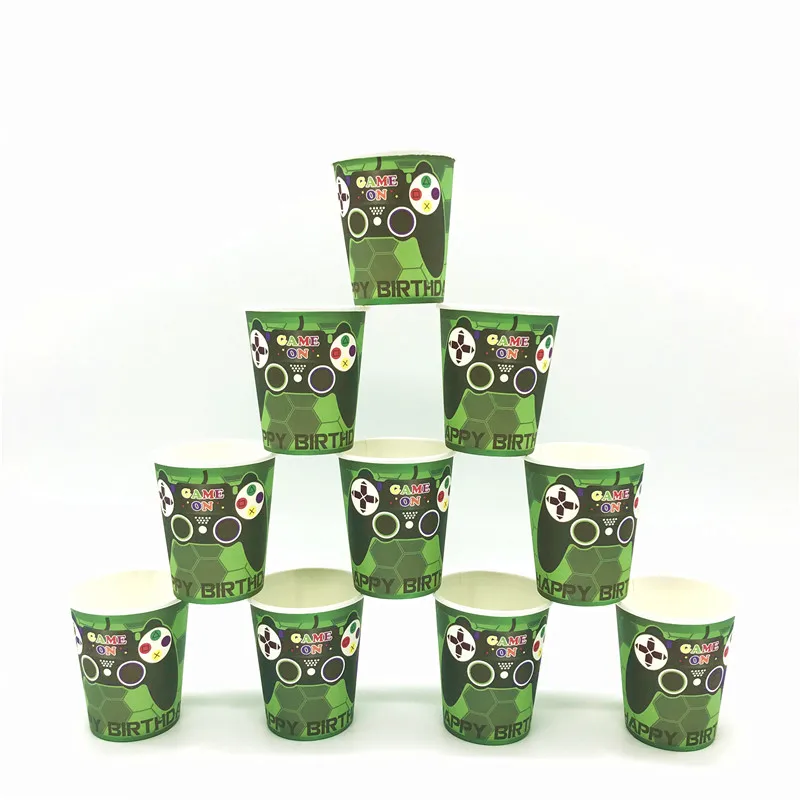 Зеленая игровая тема, вечерние одноразовые столовые приборы, набор, контроллер видеоигр, салфетка, бумажный стаканчик, тарелка, вечерние принадлежности для мальчиков