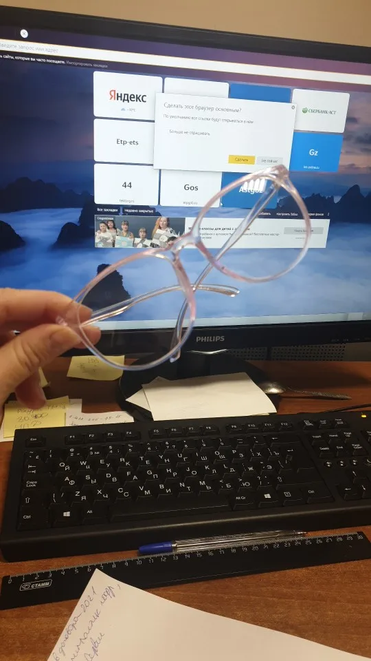 Боже, храни того, кто придумал Сбер логистику! Доставка - неделя в отделение сбербанк прям возле дома. Идеально. Теперь по очкам. Прекрасны. Очень удобные, какая-то защита есть. Но мне показалось, что искажают. Печатаю на телефоне в них и не попадаю по кнопкам завтра будем тестить на работе