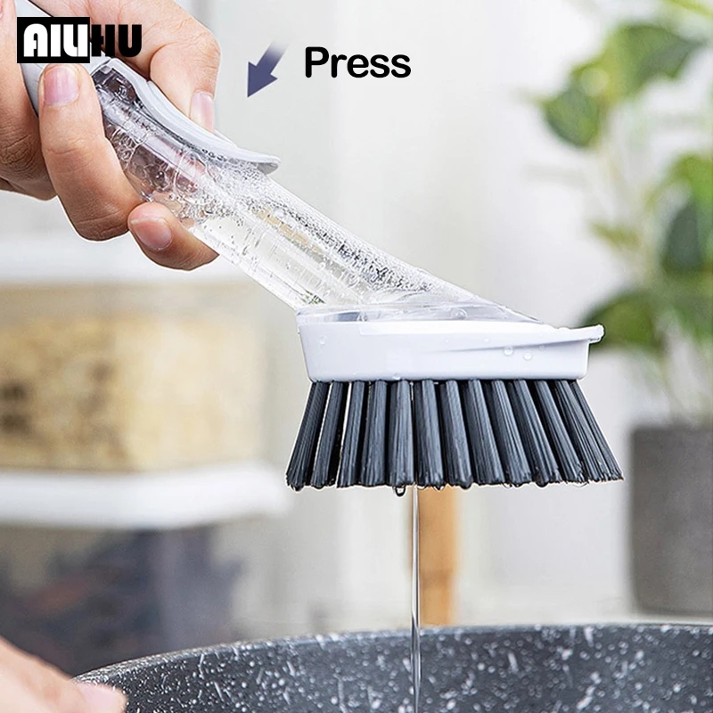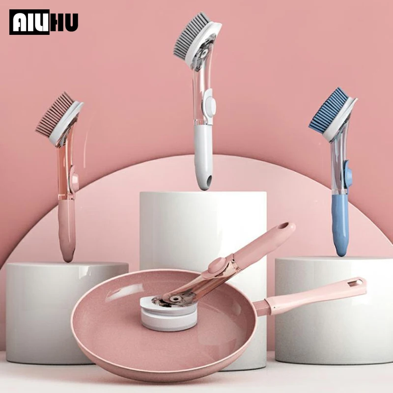 2 в 1 кухонная Чистящая Щетка с длинной ручкой со съемной щеткой губка диспенсер для мытья посуды набор кухонных принадлежностей