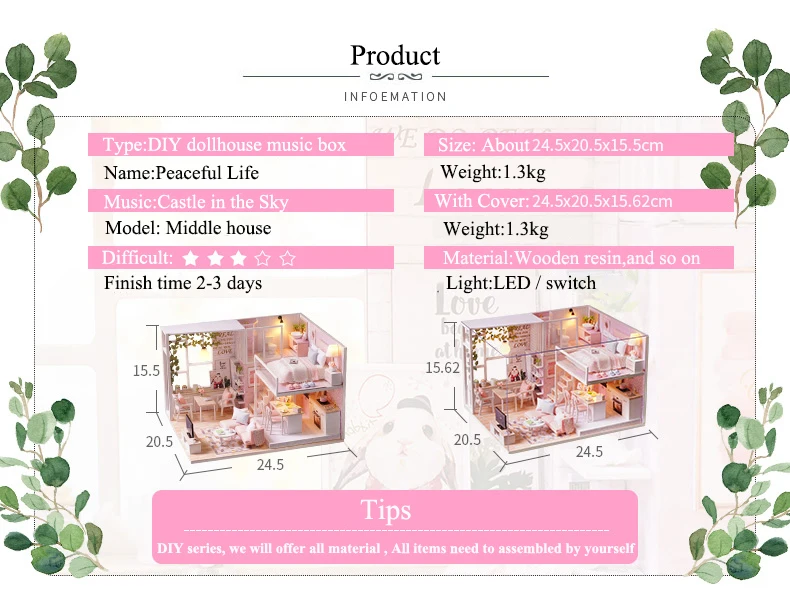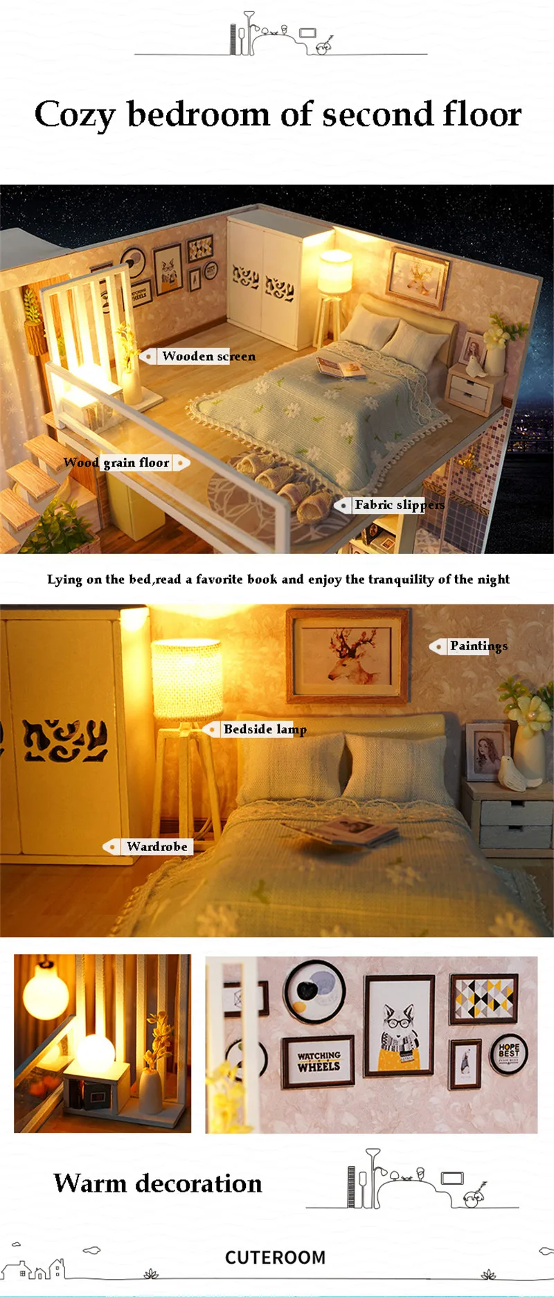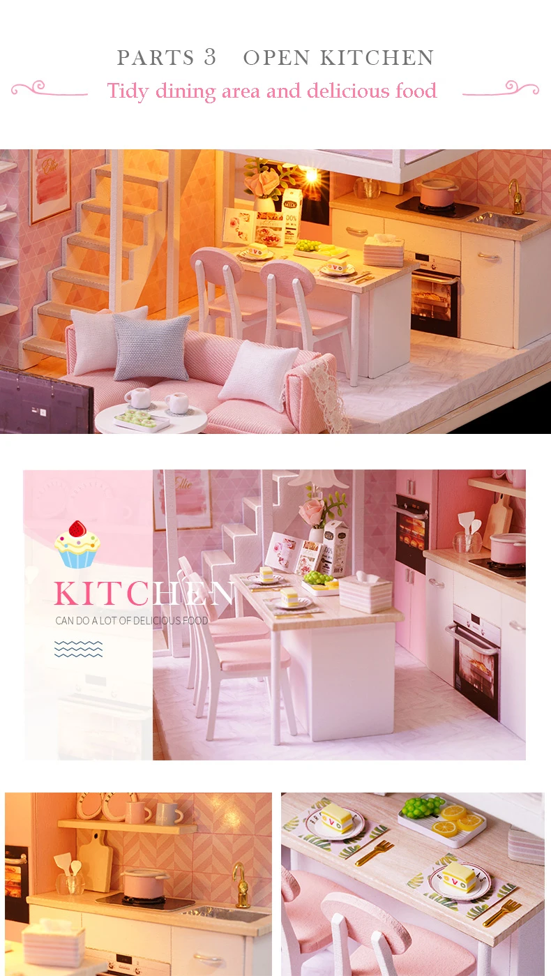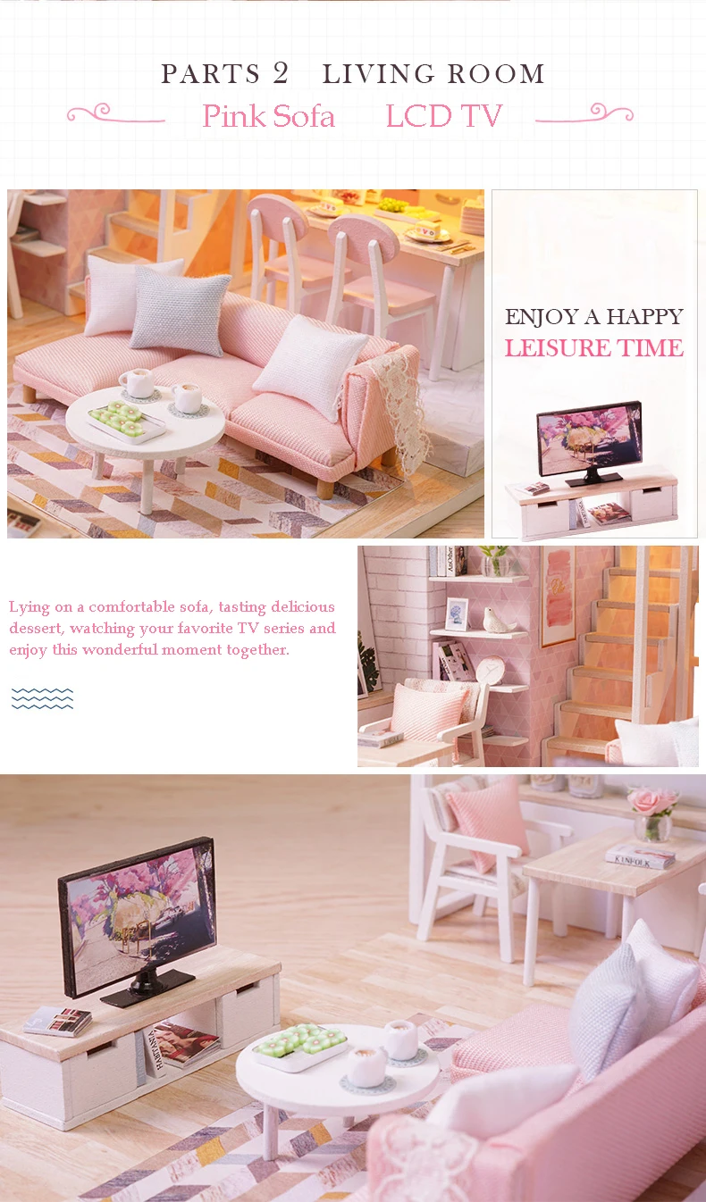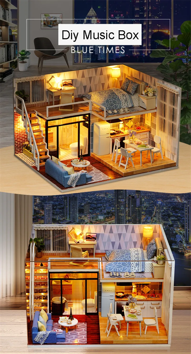 Музыкальная шкатулка деревянная рукоятка DIY Ручная игрушка модель подарок для ребенка Розовый светящийся дуплекс кукольный домик Музыкальная Коробка красивый декор стола