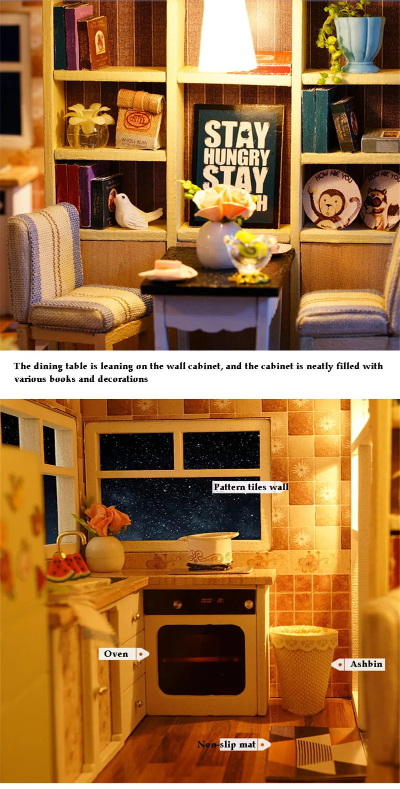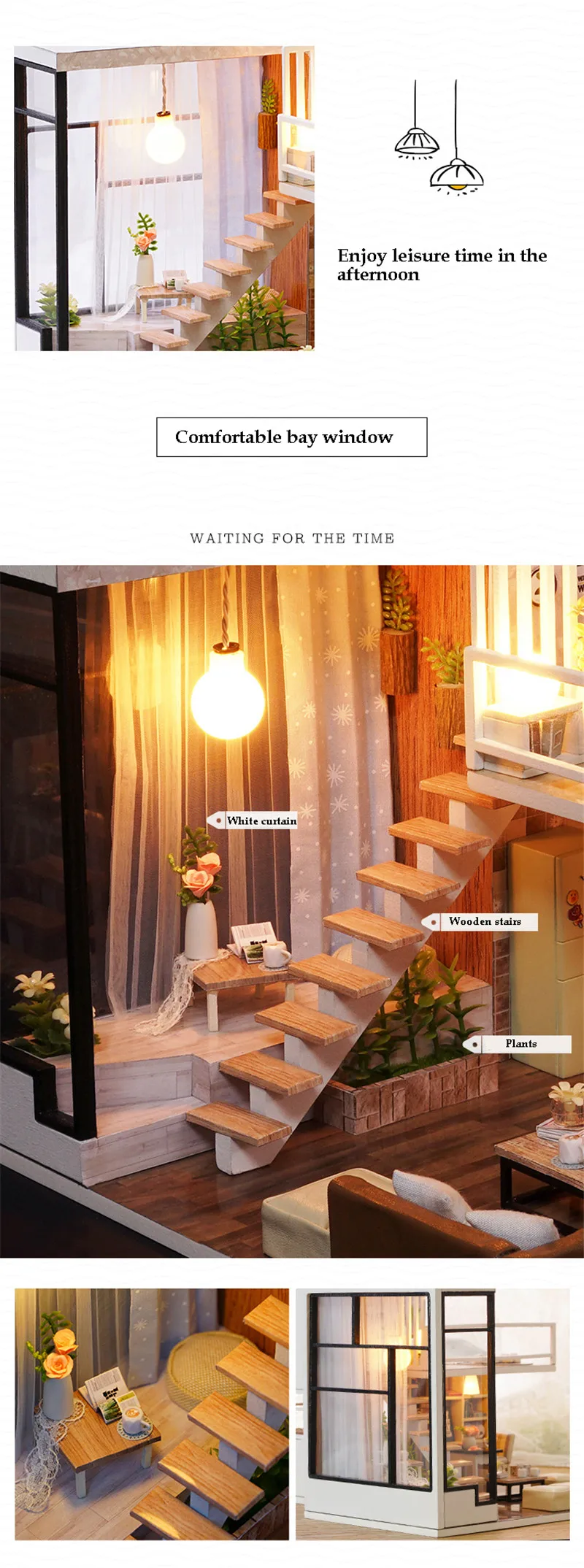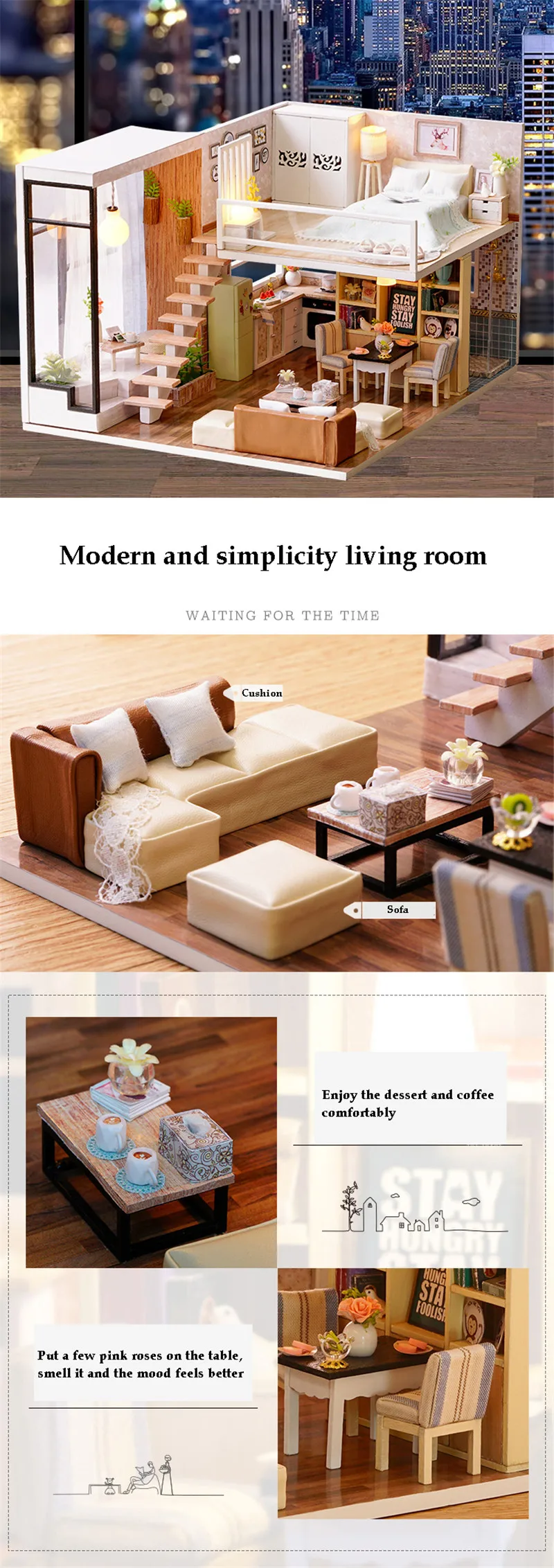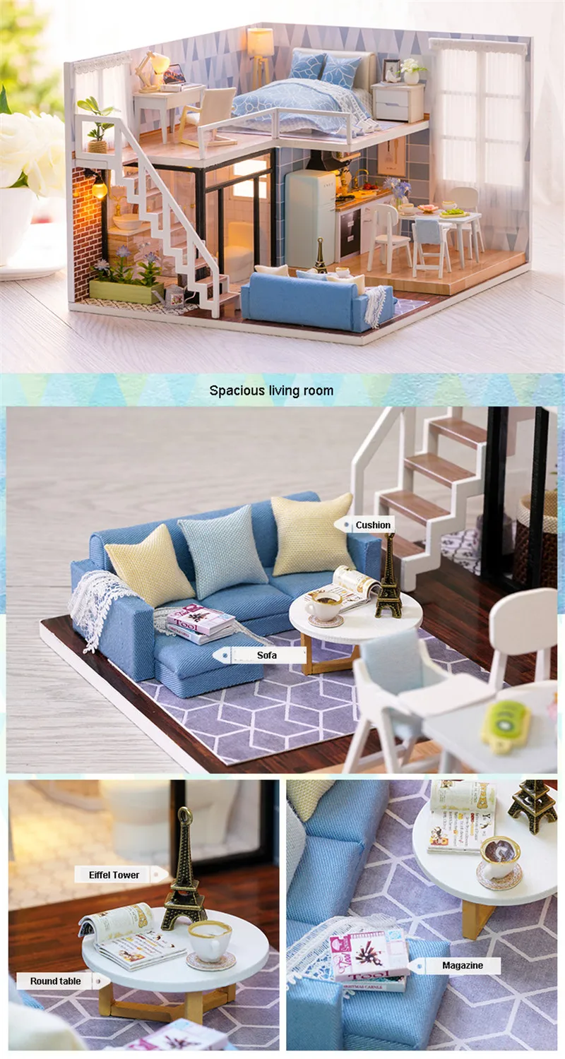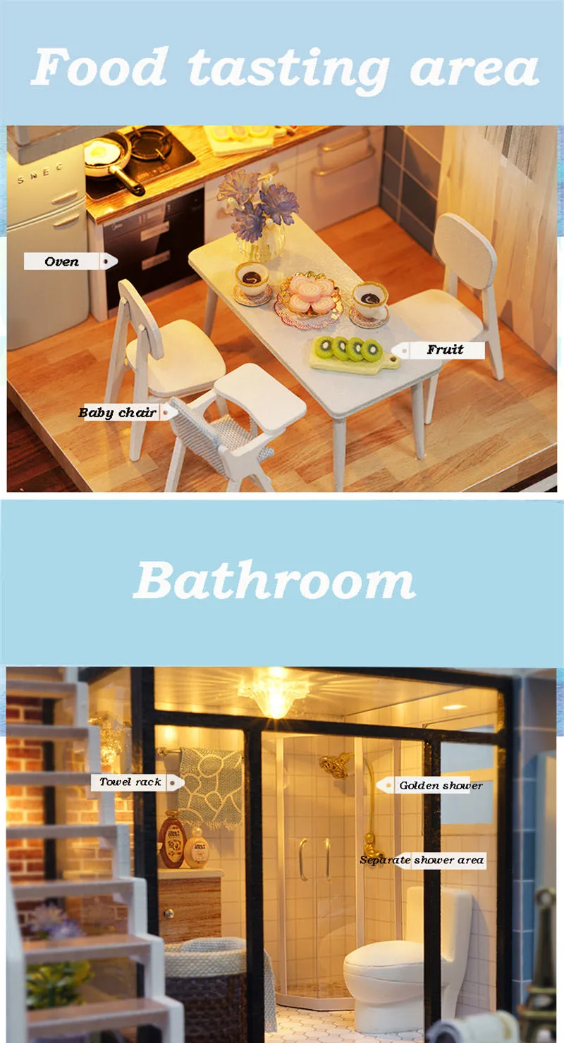 Музыкальная шкатулка деревянная рукоятка DIY Ручная игрушка модель подарок для ребенка Розовый светящийся дуплекс кукольный домик Музыкальная Коробка красивый декор стола
