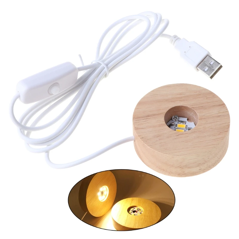 Деревянный 3D ночной Светильник, Круглый базовый держатель, светодиодный дисплей, подставка для кристаллов, стеклянный шар, светильник освещения, аксессуары