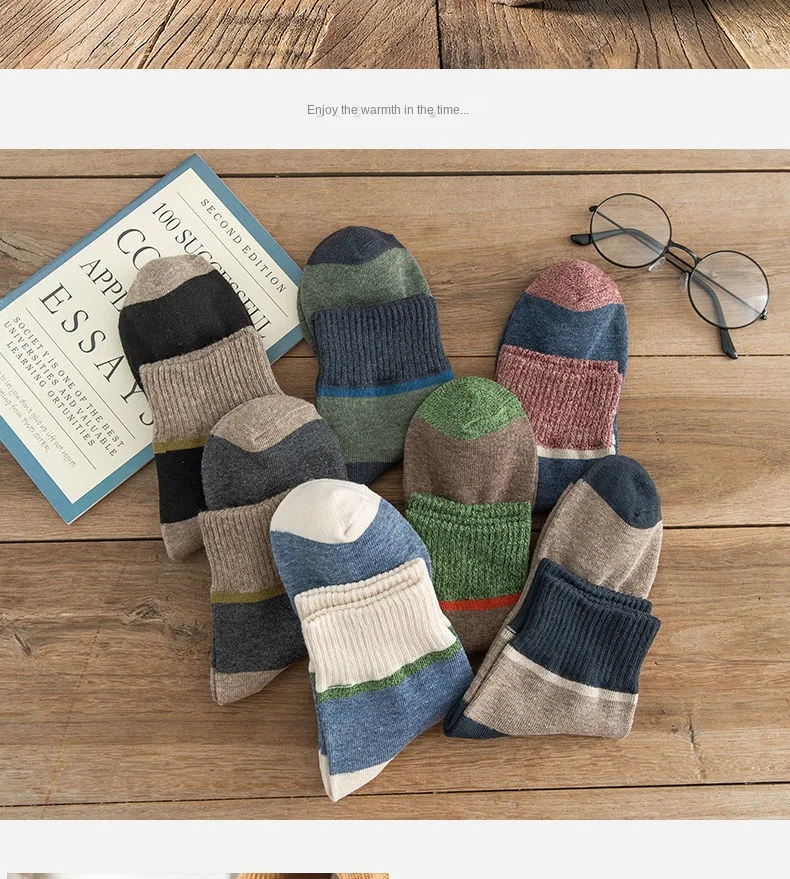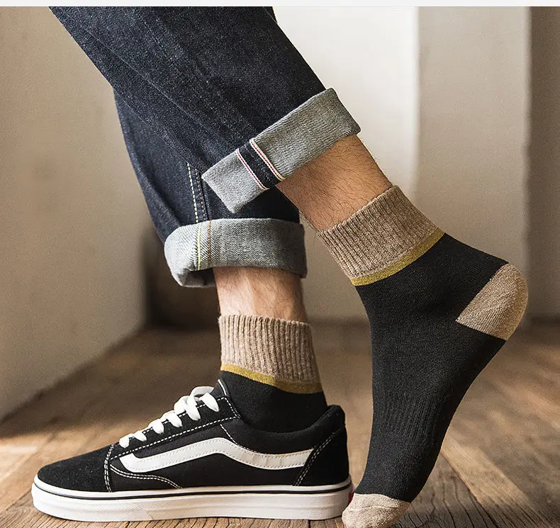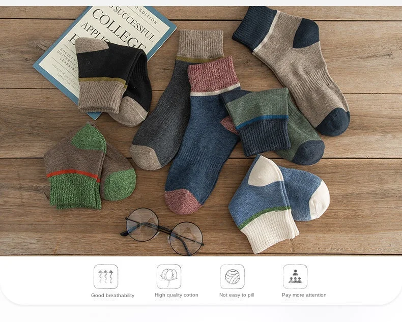 5 паркомпл. Harajuku носки осень-зима теплые мужские носки плотного мягкого детского полотенце из хлопковой махровой ткани, противоскользящие носки с принтом модные мужские носки